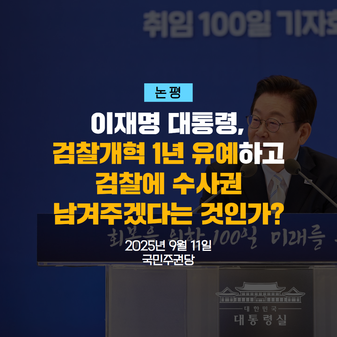 [논평] 이재명 대통령, 검찰개혁 1년 유예하고 검찰에 수사권 남겨주겠다는 것인가