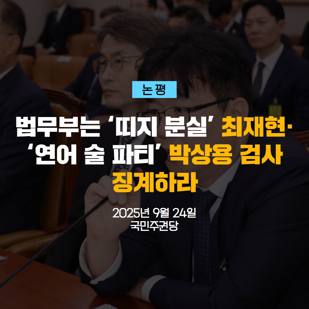 [논평] 법무부는 ‘띠지 분실’ 최재현 · ‘연어 술 파티’ 박상용 검사 징계하라