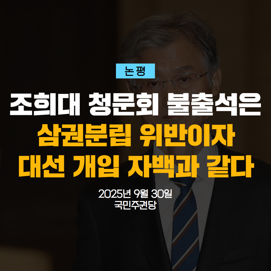 [논평] 조희대 청문회 불출석은 삼권분립 위반이자 대선 개입 자백과 같다