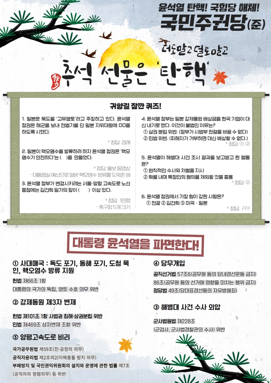 9월 27일 서울역에서 추석 귀향 선전전을 했습니다. 들뜬 마음으로 귀향하시는 분들에게 윤석열 탄핵 여론을 전국으로 확산시켜달라고 호소하였습니다.