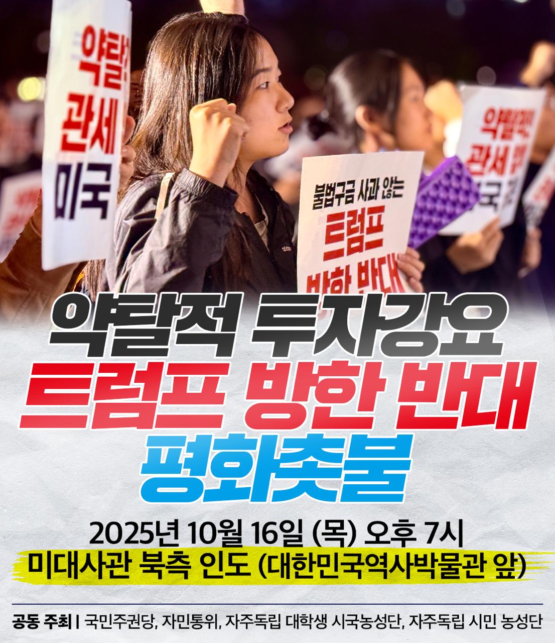 글 제목 : [공지] 약탈적 투자강요 트럼프 방한 반대 평화촛불