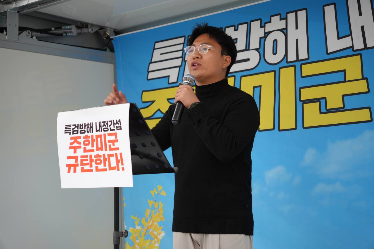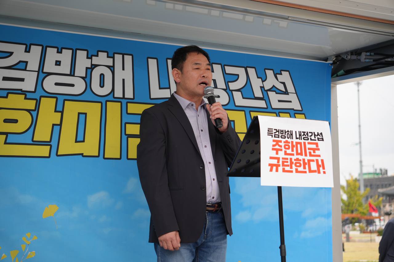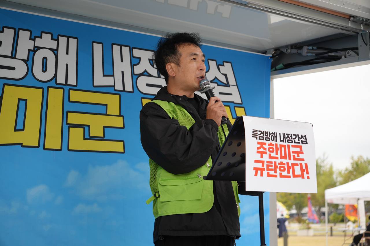 소식/활동 소식 2025. 10. 18. [사진] 특검방해 내정간섭 주한미군 규탄집회 글자 작게 글자 크게 인쇄 공유 닫기 이 글을 공유합니다. 카카오스토리 페이스북 네이버블로그 트위터 링크복사 글 작성 : 2025년 10월 18일 글 제목 : [사진] 특검방해 내정간섭 주한미군 규탄집회 ■ 영상 [생중계] 특검방해 내정간섭 주한미군 규탄집회 | 10/18(토) 오후 2시, 미대사관 북측 ■ 사진 조하경 국민주권당 청년위원장 (왼쪽) 윤경황 서울촛불행동 공동대표 (오른쪽) 이은지 인천촛불행동 대표 (왼쪽) 백륭 자주독립 대학생 시국 농선단 단장 (오른쪽) 곽성용 광주전남촛불행동 서남지부 사무국장 공유하기 게시글 관리 국민주권당 저작자표시 (새창열림)