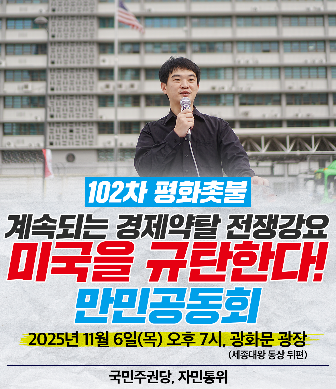 글 제목 : [공지] 102차 평화촛불 | 계속되는 경제약탈 전쟁강요 미국을 규탄한다!