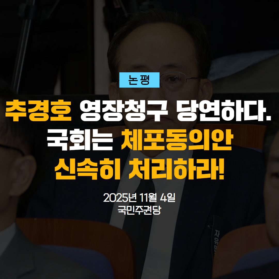 추경호 전 원내대표는 윤석열·한덕수 등의 지시를 받아 의원총회 소집 등을 주도한 내란 중요임무 종사자다. 반드시 구속·처벌되어야 한다. 국회는 신속히 체포동의안을 통과시켜야 한다.