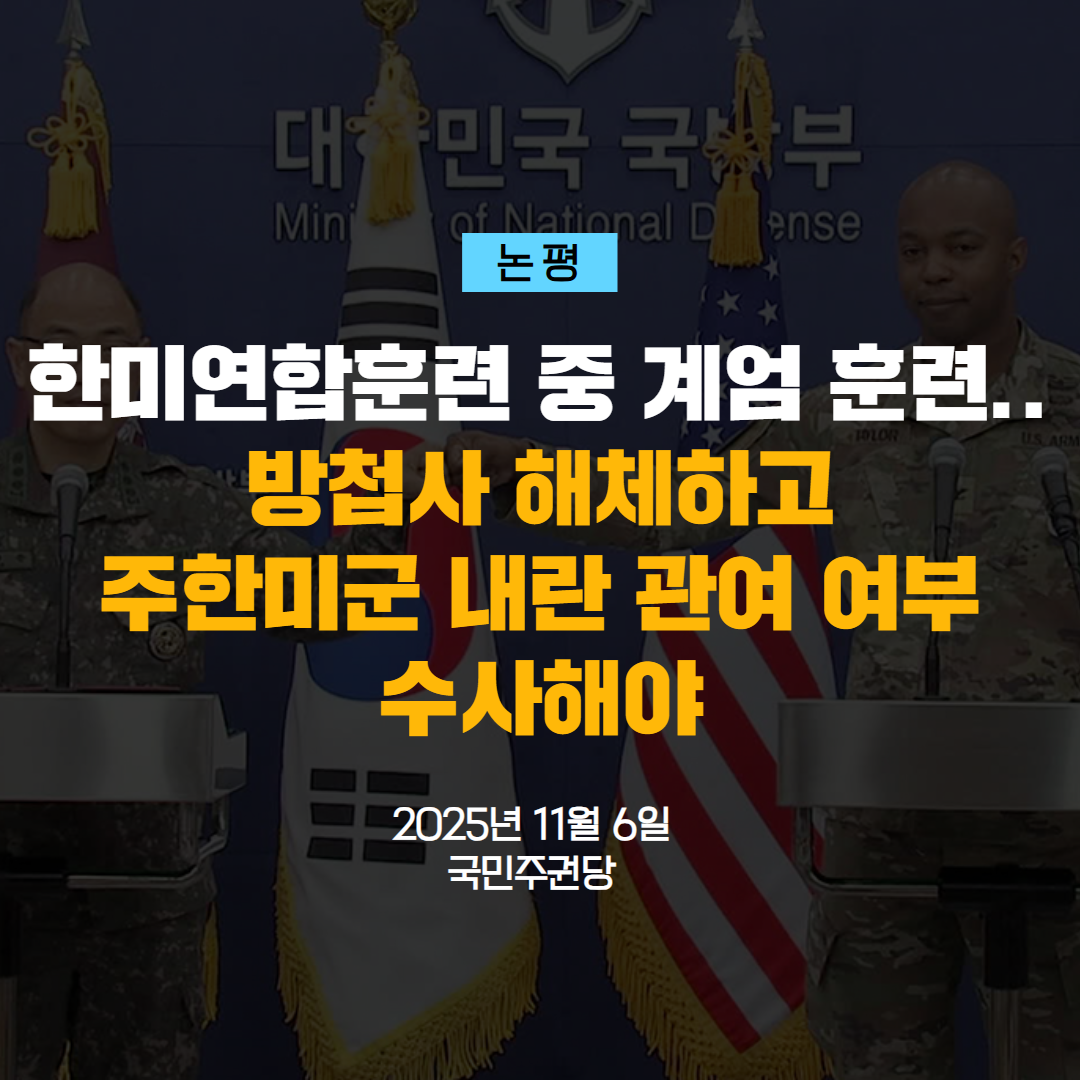 [논평] 한미연합훈련 중 계엄 훈련.. 방첩사 해체하고 주한미군 내란 관여 여부 수사해야