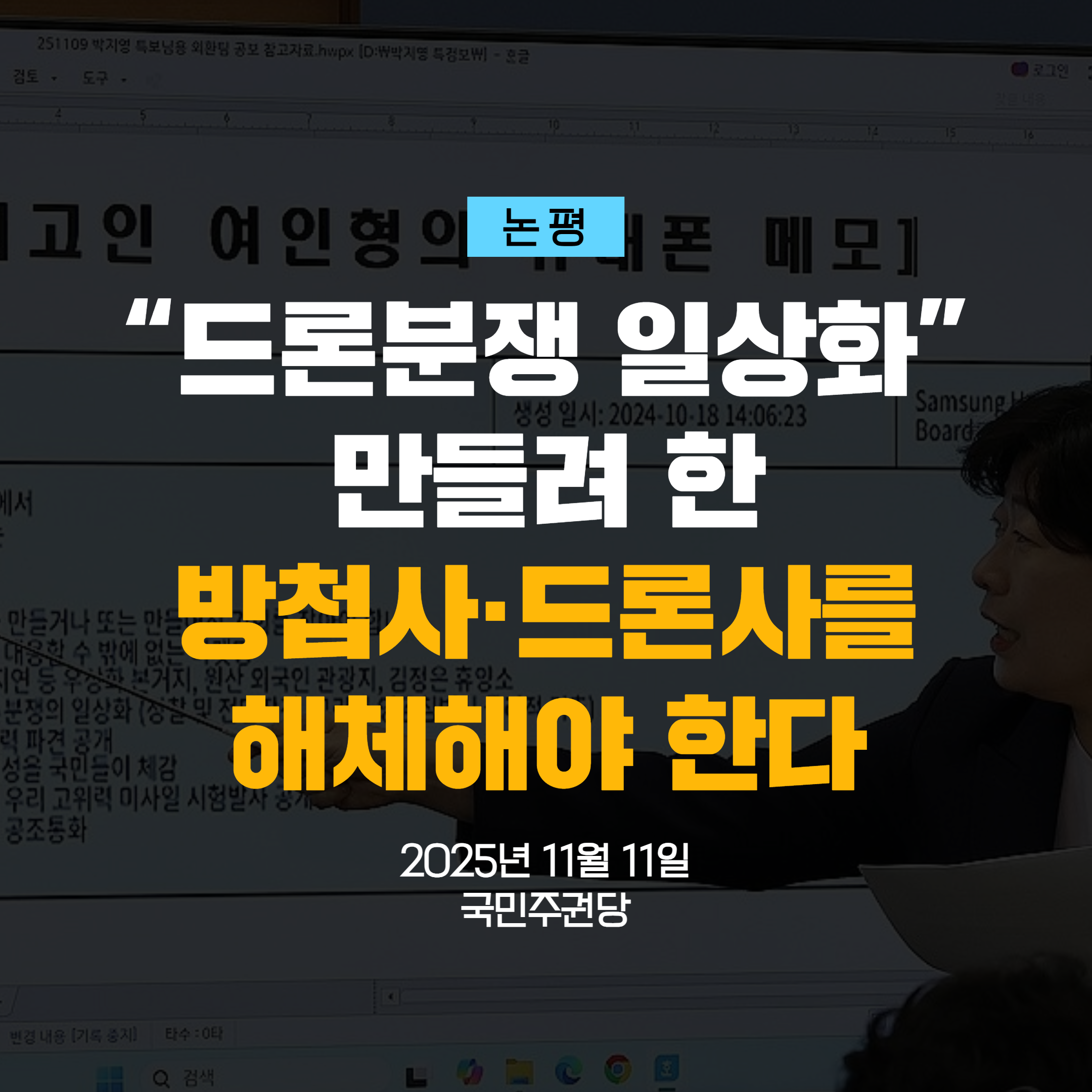 [논평] “드론분쟁 일상화” 만들려 한 방첩사·드론사를 해체해야 한다