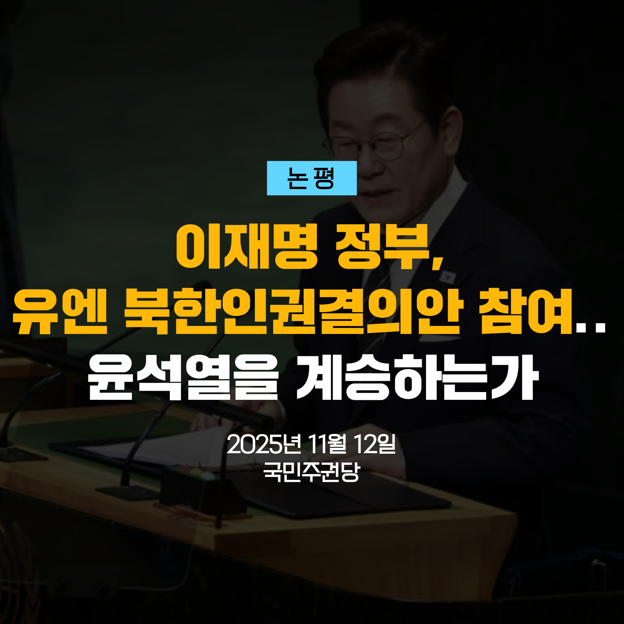 [논평] 이재명 정부, 유엔 북한인권결의안 참여.. 윤석열을 계승하는가