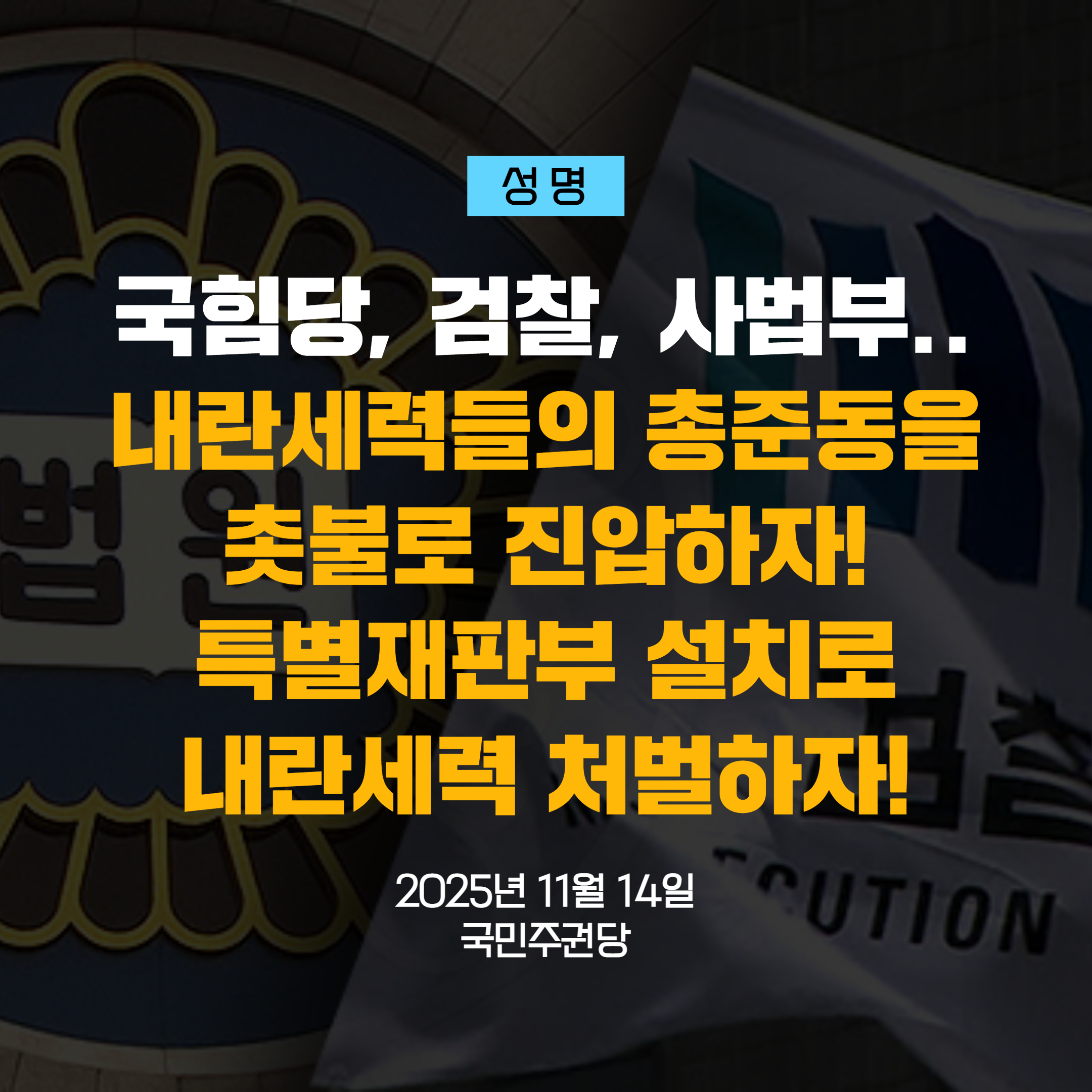 [성명] 국힘당, 검찰, 사법부.. 내란세력들의 총준동을 촛불로 진압하자! 특별재판부 설치로 내란세력 처벌하자!