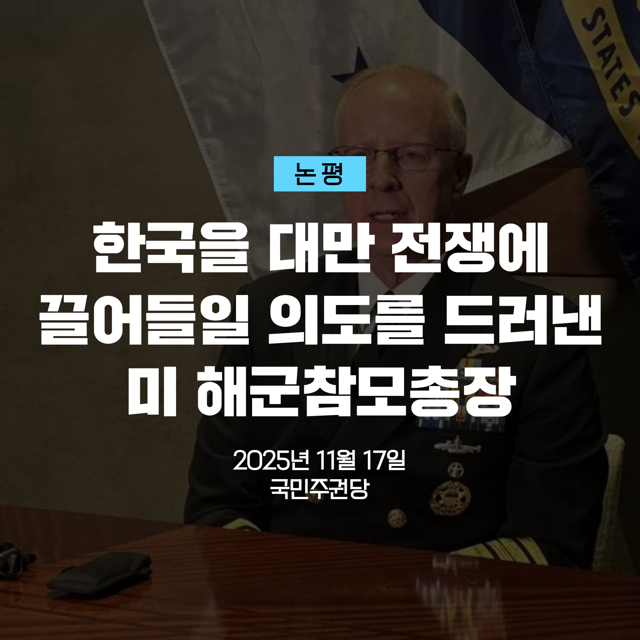 [논평] 한국을 대만 전쟁에 끌어들일 의도를 드러낸 미 해군참모총장
