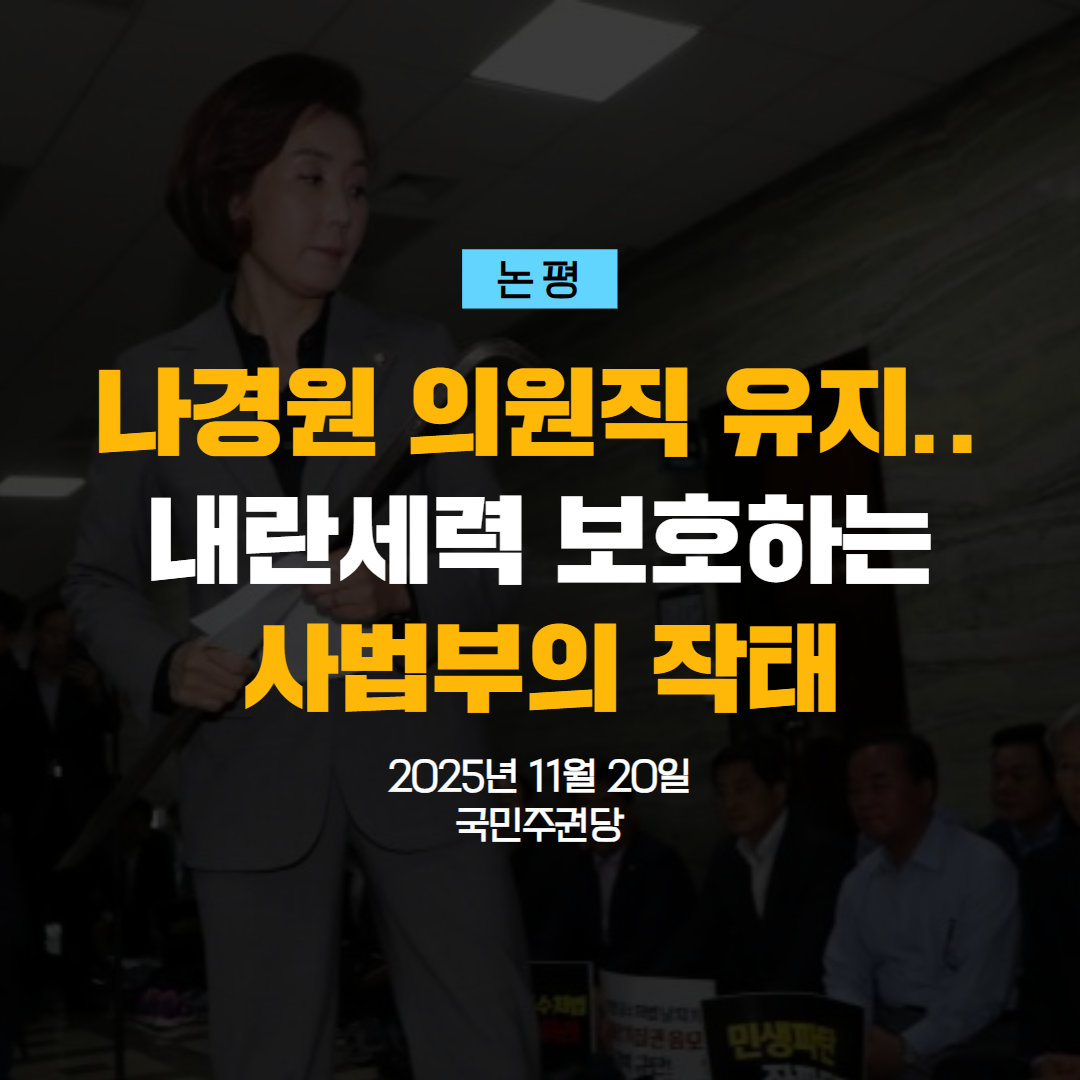 글 제목 : [논평] 나경원 의원직 유지.. 내란세력 보호하는 사법부의 작태