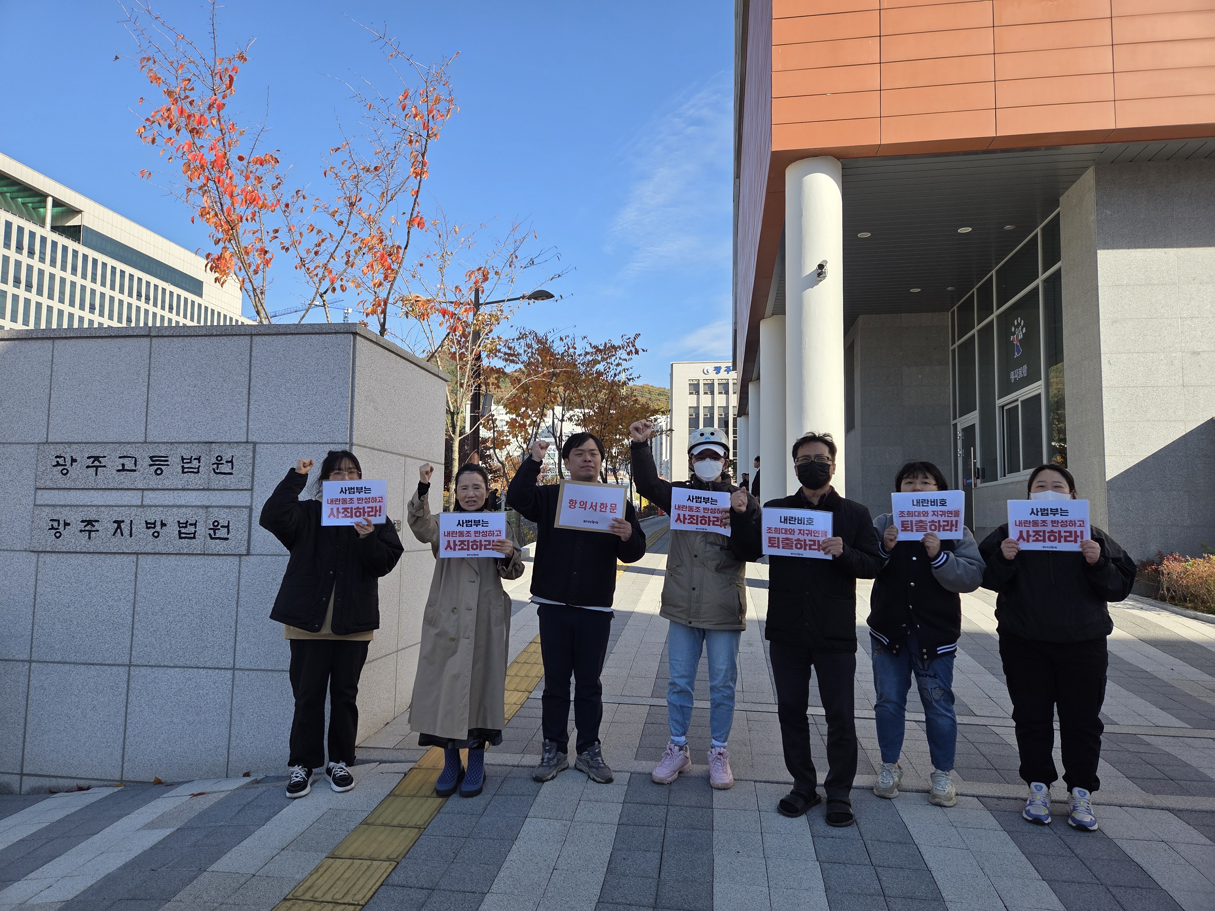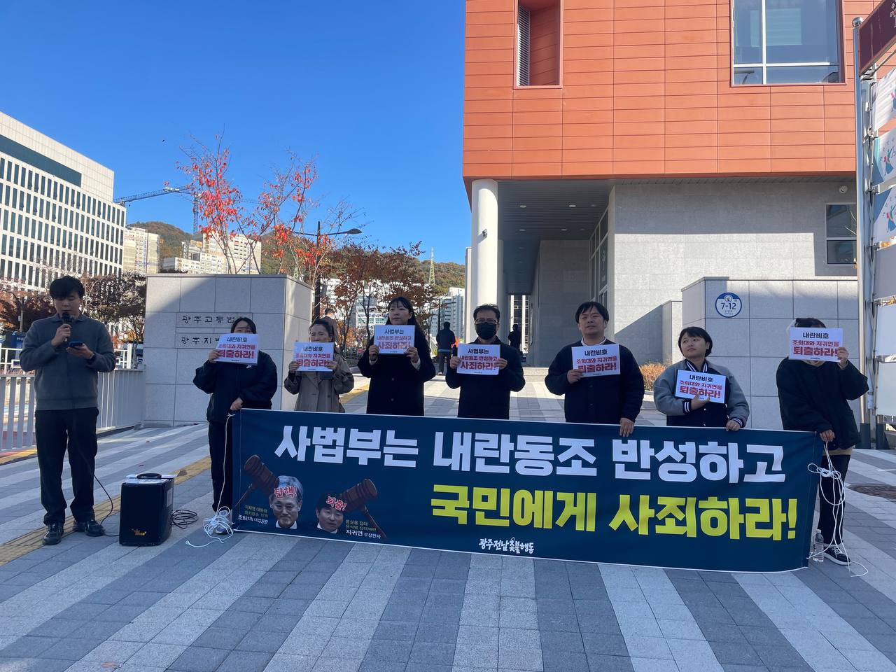 글 제목 : [광주] 11.14. 내란동조 사법부 반성, 사죄 촉구 항의서한 전달 기자회견(광주 지방법원)