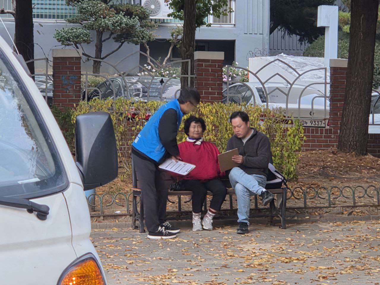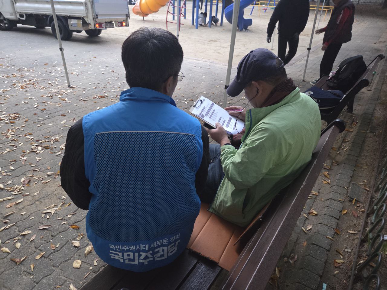 11월 13일, 문흥동 일대에서 오후 4시부터 6시까지 약 2시간 정도 진행했습니다. 이정성 당원도 바쁜 와중에 짬내서 주민 설문을 위해 출동해주셨습니다.