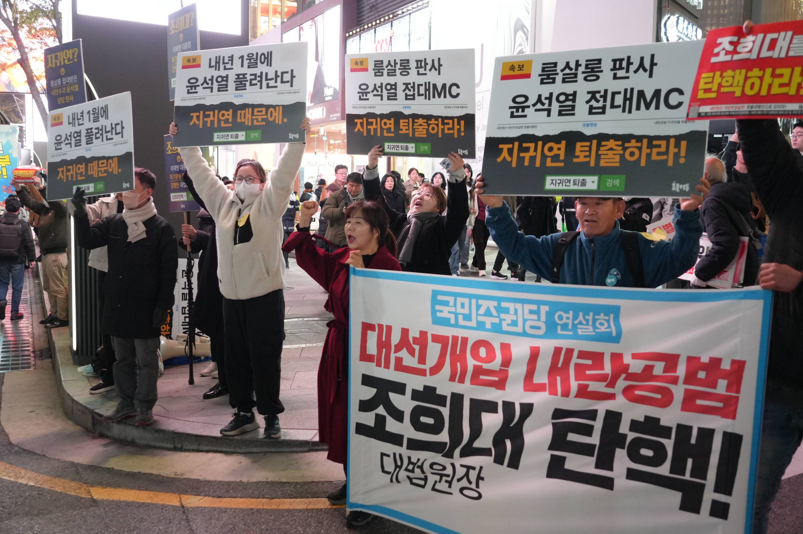 소식/활동 소식 2025. 11. 24. [사진] 11/22 강남역 활동 (조희대 탄핵 선전) 글자 작게 글자 크게 인쇄 공유 닫기 이 글을 공유합니다. 카카오스토리 페이스북 네이버블로그 트위터 링크복사 글 작성 : 2025년 11월 24일 글 제목 : [사진] 11/22 강남역 활동 (조희대 탄핵 선전) 공유하기 게시글 관리 국민주권당 저작자표시 (새창열림)