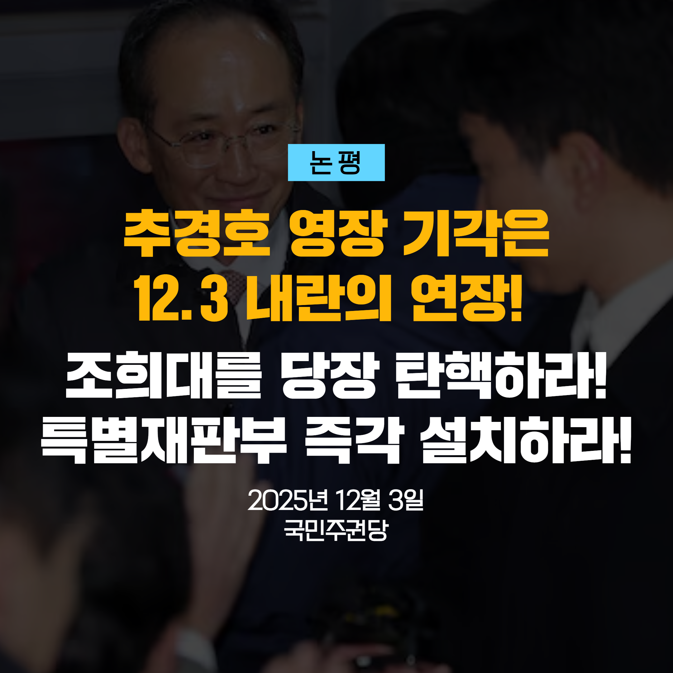 글 제목 : [논평] 추경호 영장 기각은 12.3 내란의 연장! 조희대를 당장 탄핵하라! 특별재판부 즉각 설치하라!