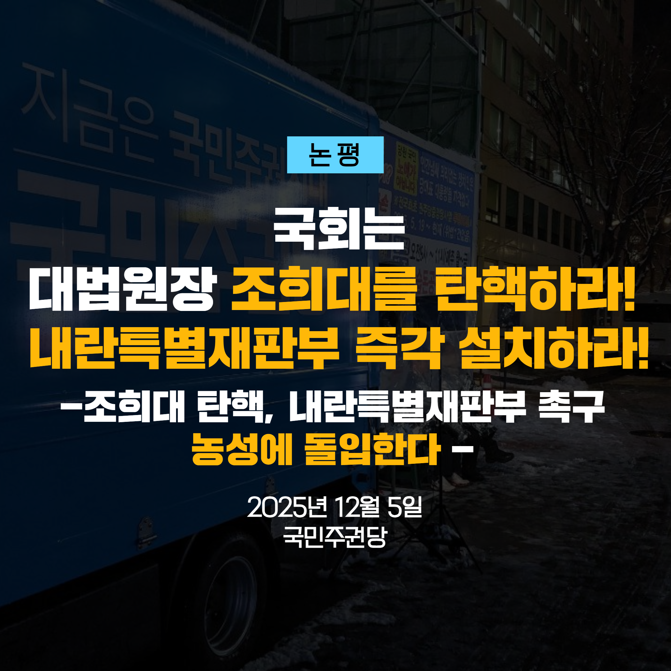 글 제목 : [논평] 국회는 대법원장 조희대를 탄핵하라! 내란특별재판부 즉각 설치하라!