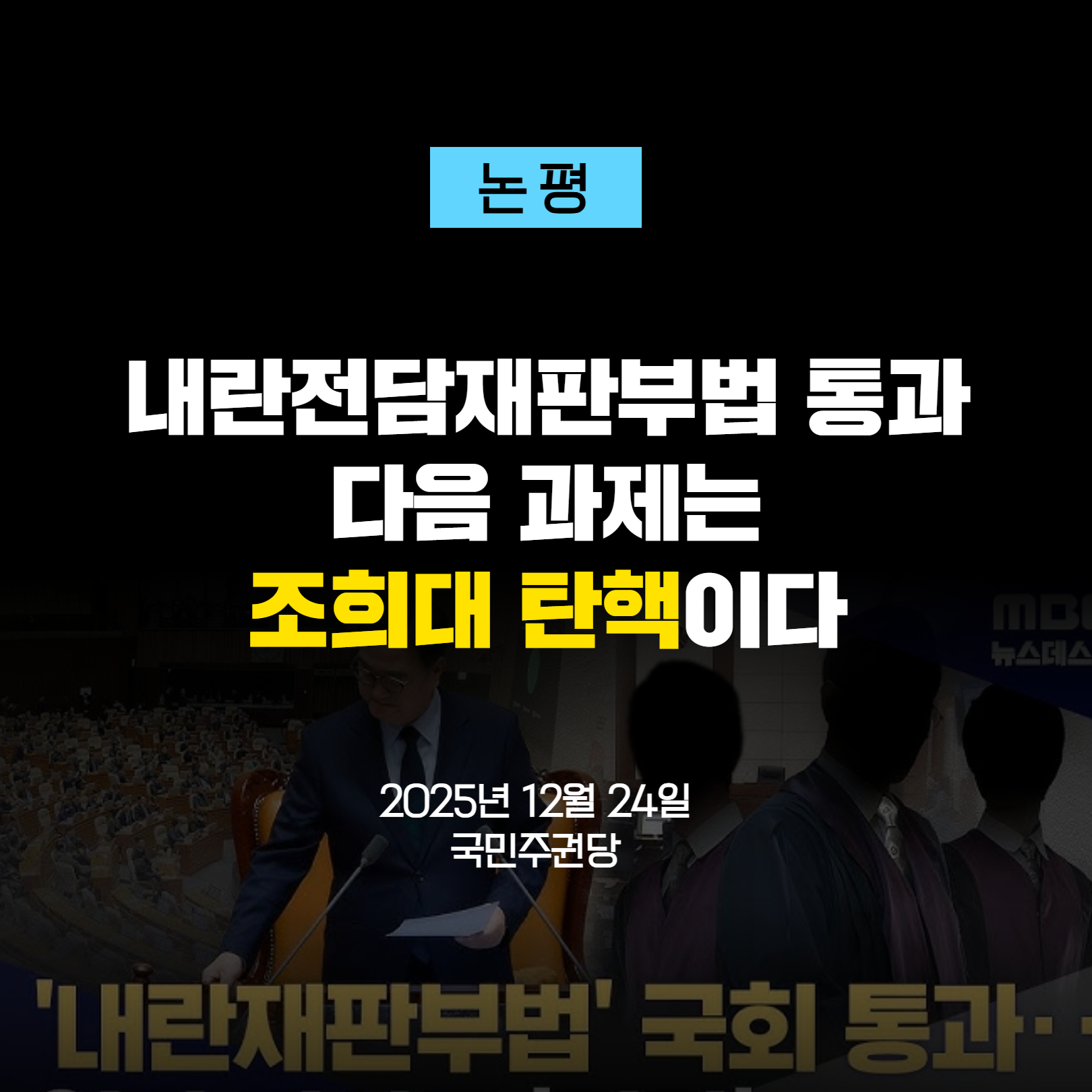 글 제목 : [논평] 내란전담재판부법 통과, 다음 과제는 조희대 탄핵이다