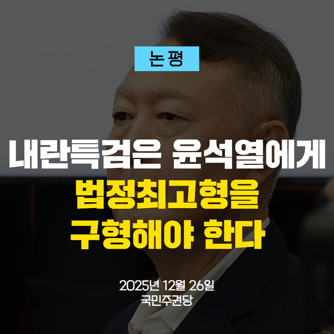 [논평] 내란특검은 윤석열에게 법정최고형을 구형해야 한다
