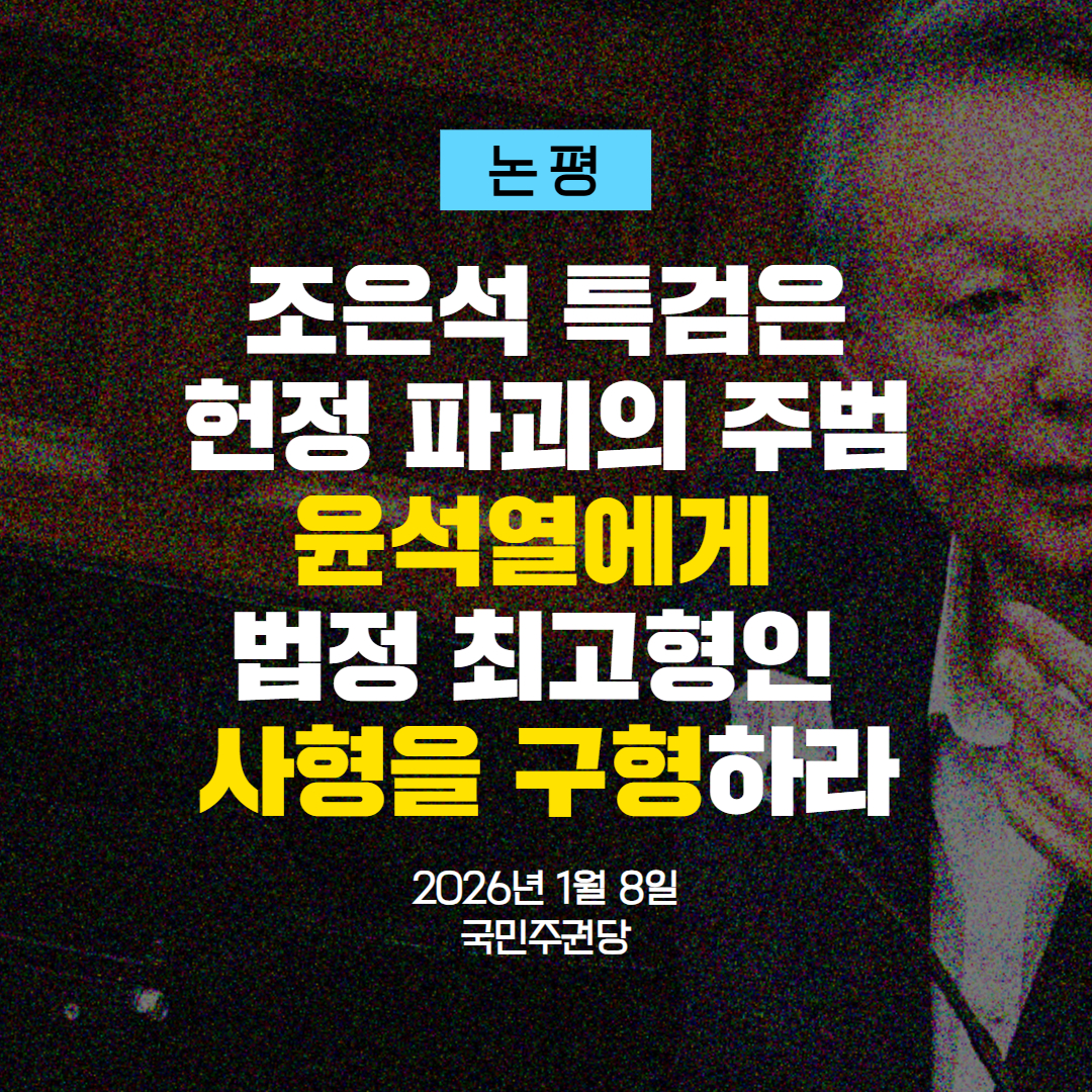 [논평] 조은석 특검은 헌정 파괴의 주범 윤석열에게 법정 최고형인 '사형'을 구형하라