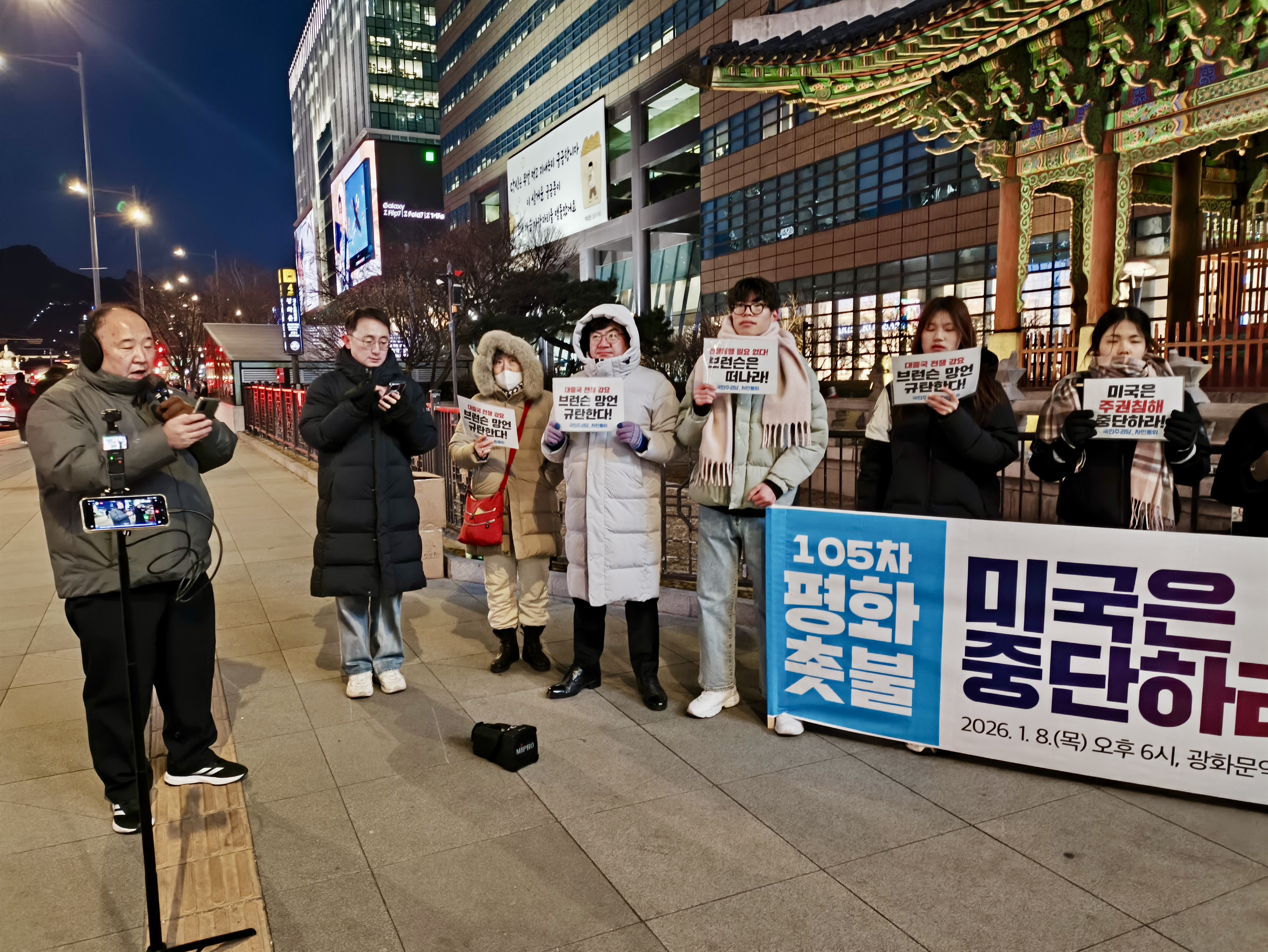 평화촛불에서는 미국이 베네수엘라를 불법 침공하는 것은 물론이고 세계 곳곳에서 주권침해를 일으키고 있음을 지적하며 악의 축 미국을 규탄했습니다.