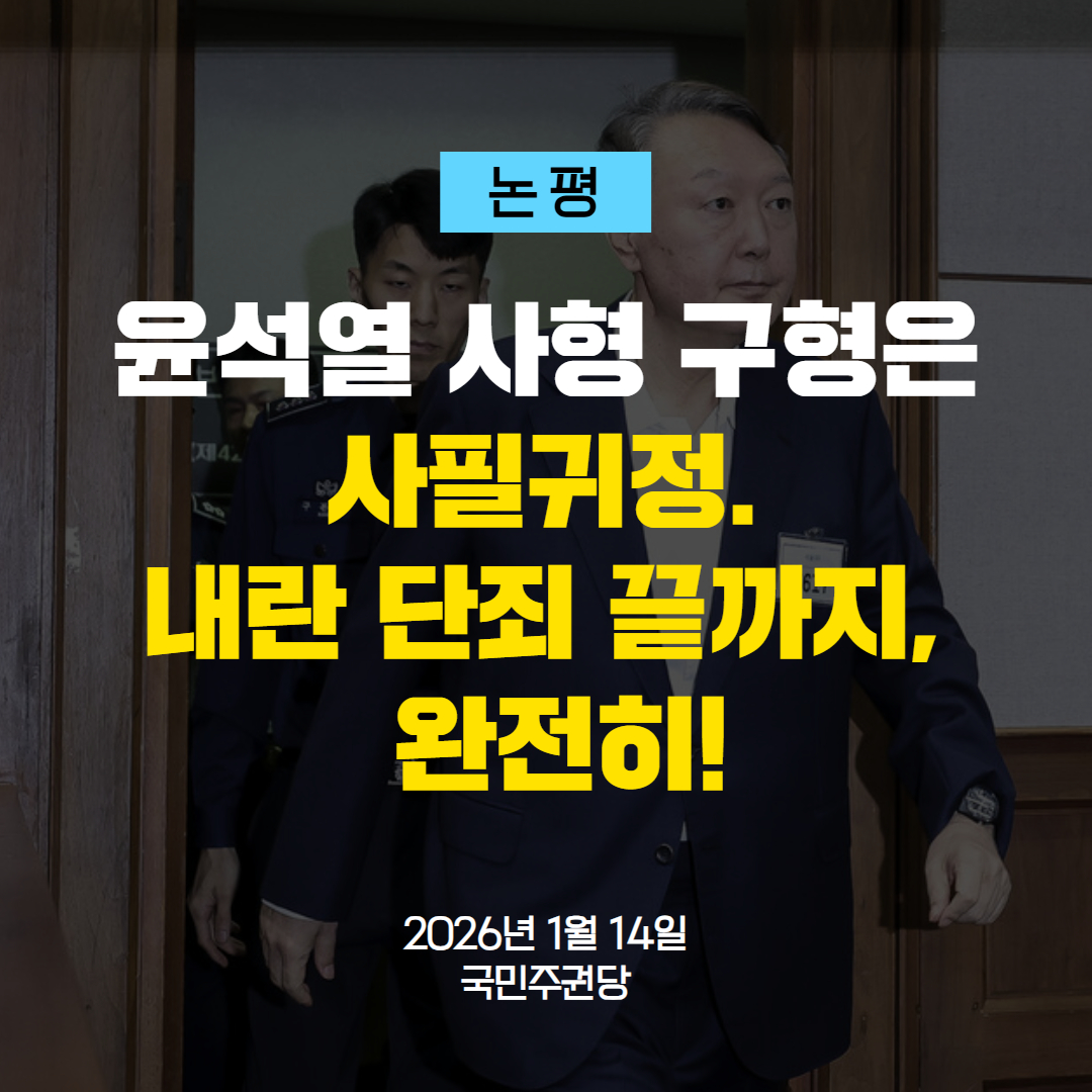 [논평] 윤석열 사형 구형은 사필귀정. 내란 단죄 끝까지, 완전히!