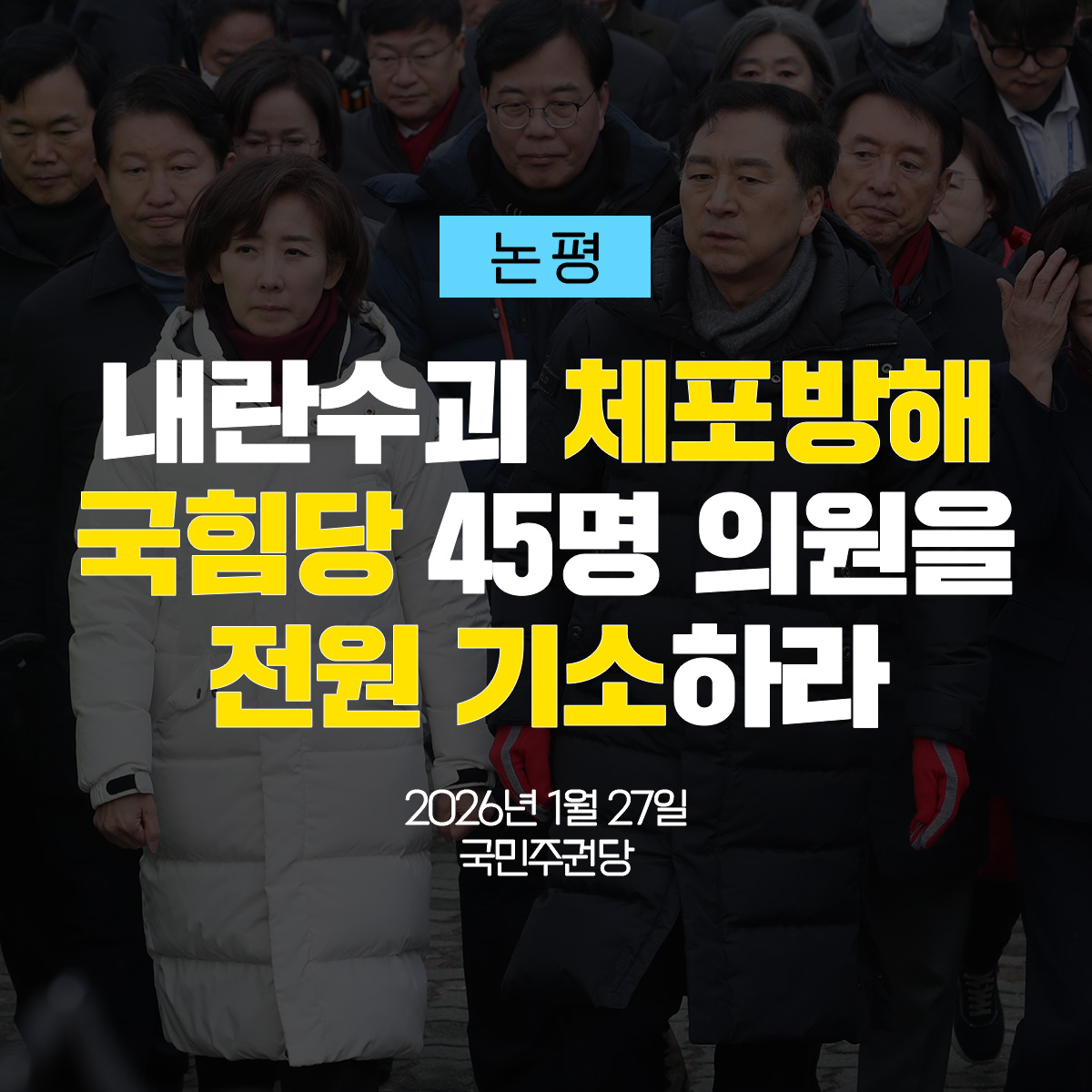 [논평] 내란수괴 체포방해 국힘당 45명 의원을 전원 기소하라
