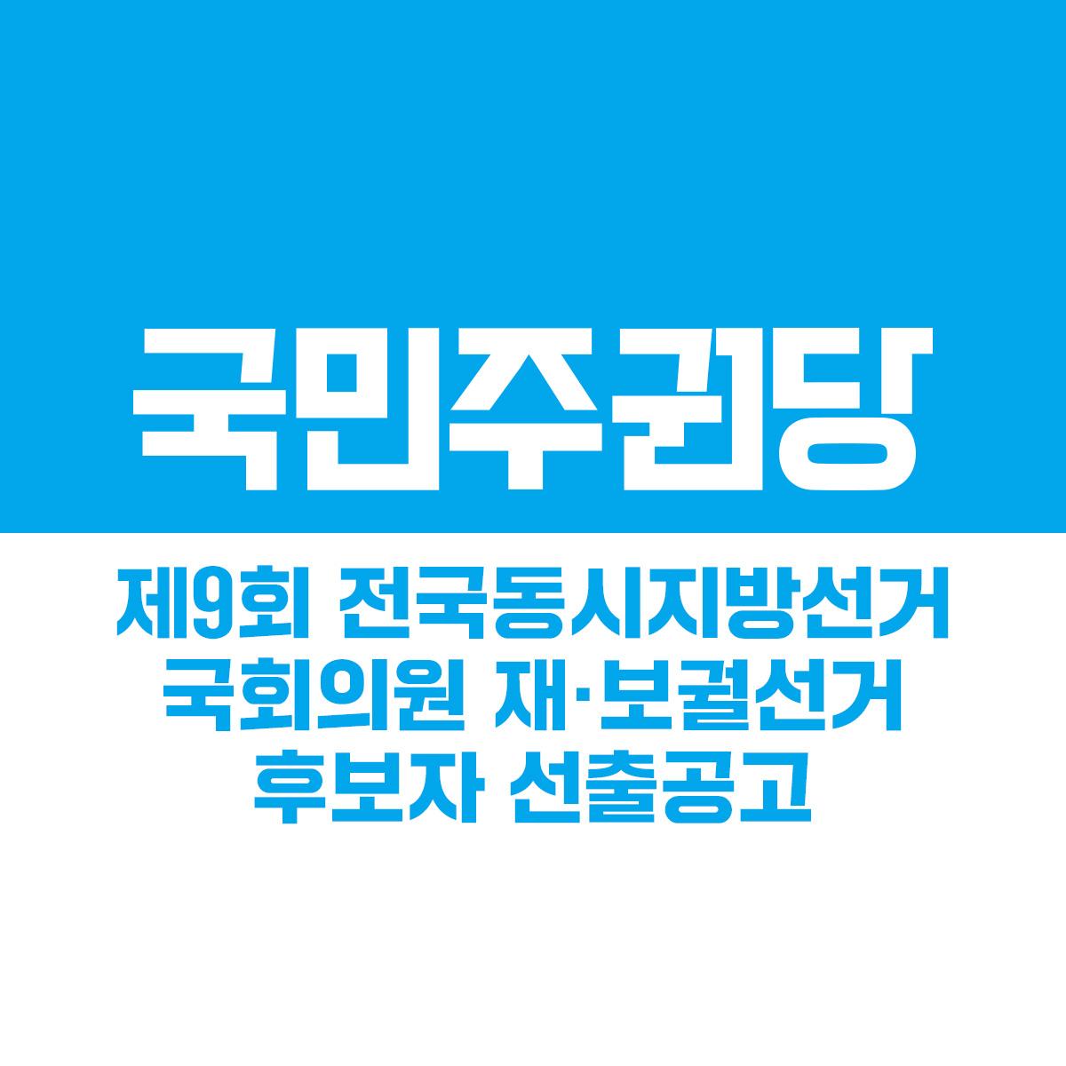 글 제목 : 제9회 전국동시지방선거, 국회의원 재·보궐 선거 후보자 1차 선출 공고