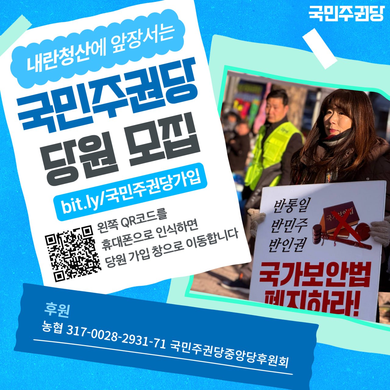 ✔️국민주권당 후원하기 : 농협 317-0028-2931-71(국민주권당중앙당후원회 )