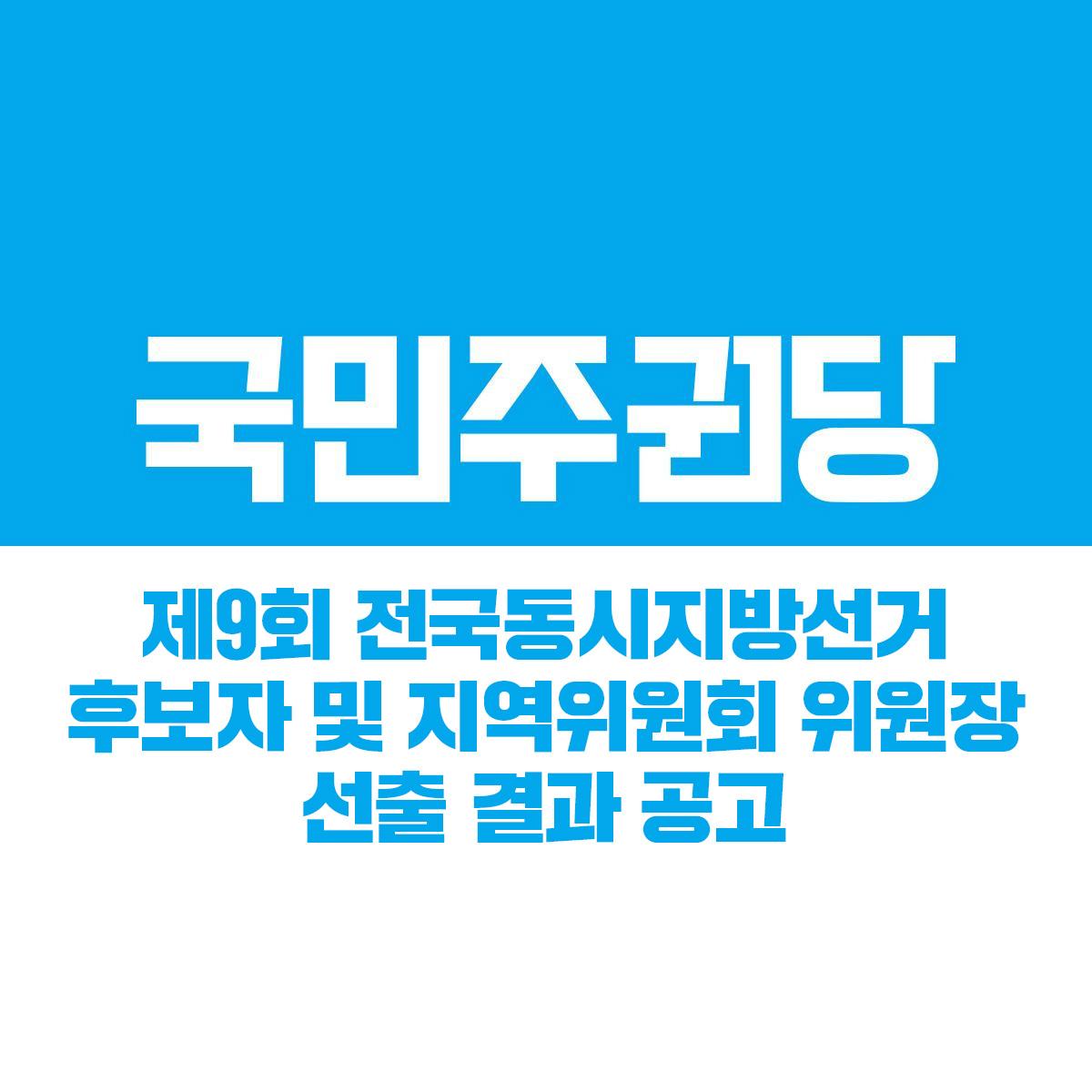 글 제목 : [공고] 제9회 전국동시지방선거 후보자 및 지역위원회 위원장 선출 결과