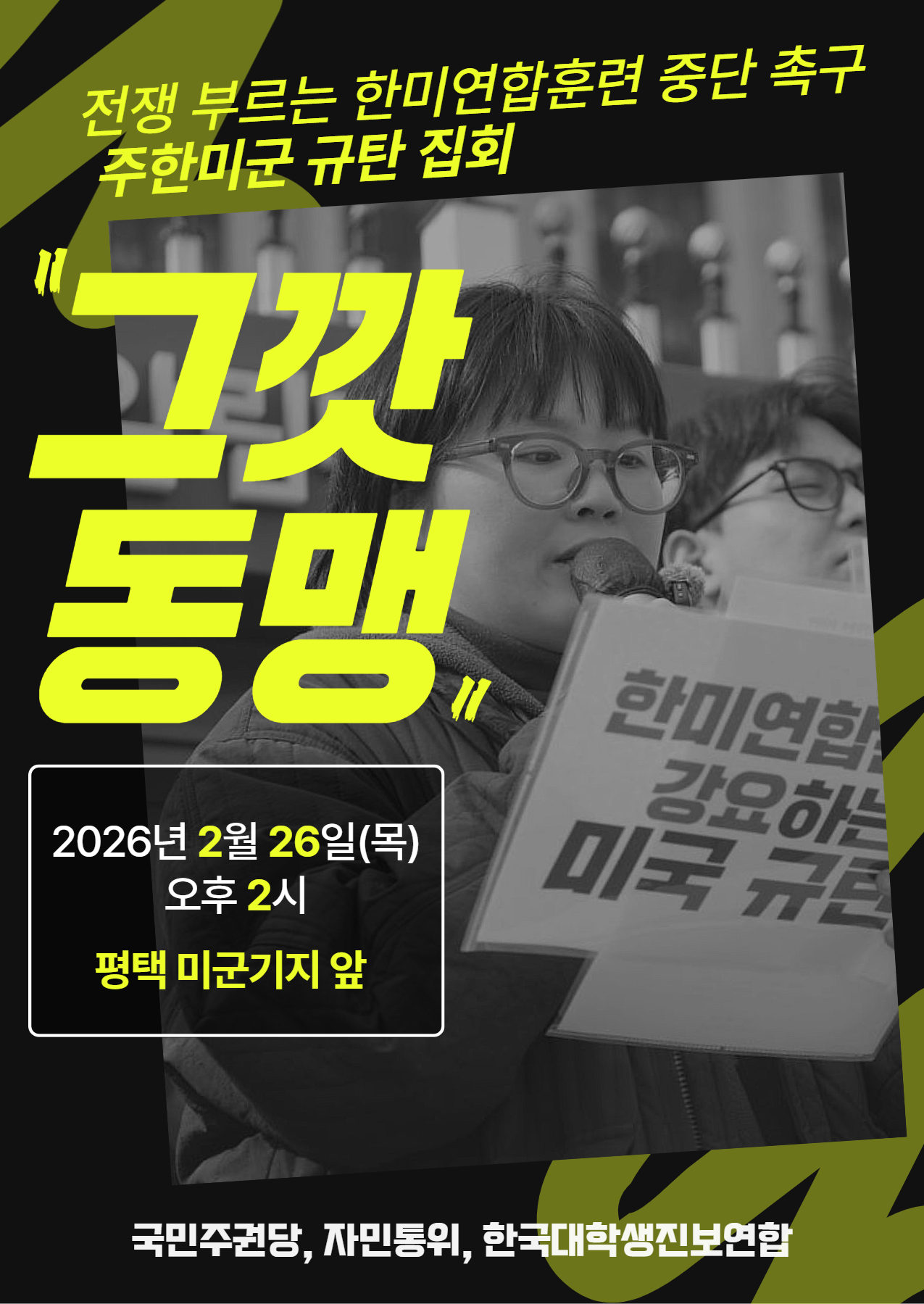 글 제목 : <전쟁부르는 한미연합훈련 중단 촉구 주한미군 규탄 집회 참가 안내>