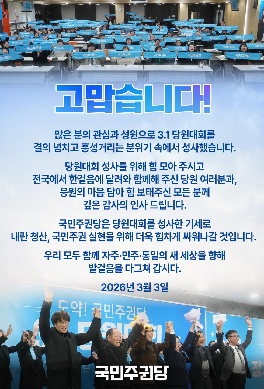 글 제목 : [고맙습니다] 3.1 당원대회 성사에 감사를 전합니다