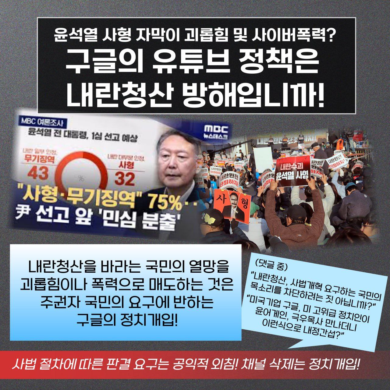 📍구글의 유튜브 정책은 내란청산 방해입니까?
