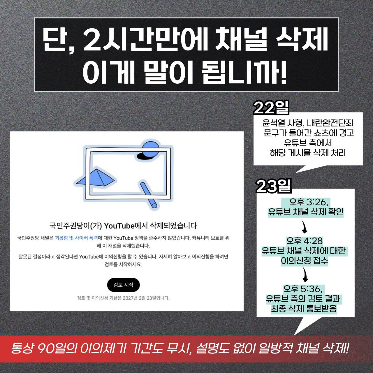 글 제목 : [카드뉴스] 국민주권당 유튜브 채널 삭제에 대한 입장