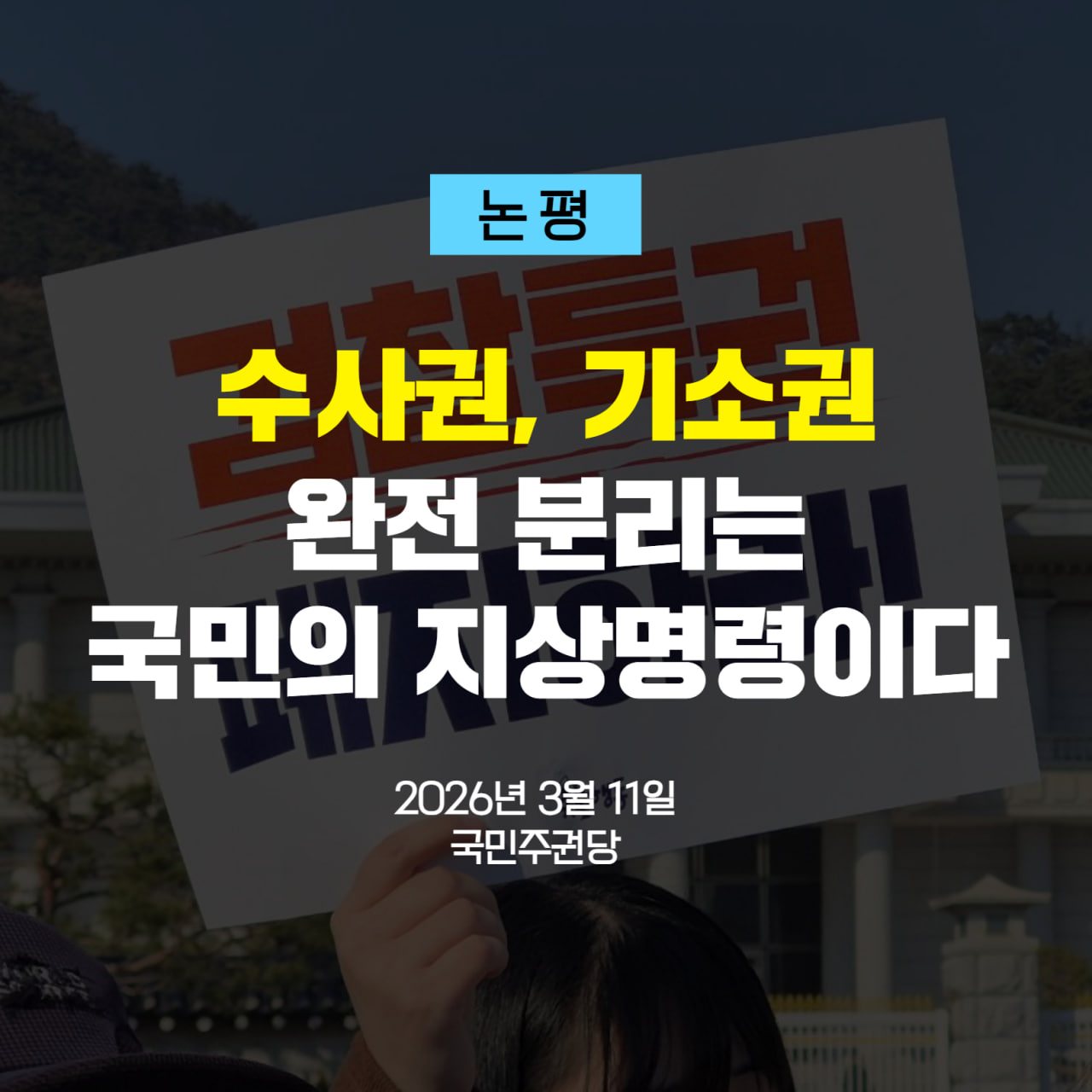 글 제목 : [논평] 수사권, 기소권 완전 분리는 국민의 지상명령이다