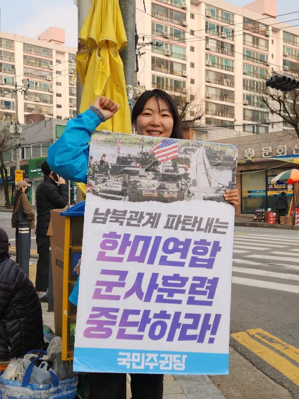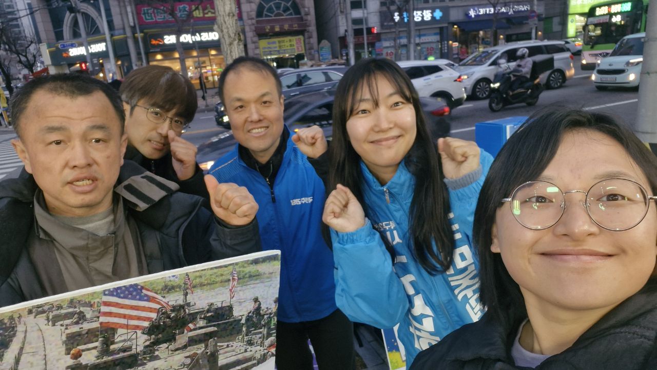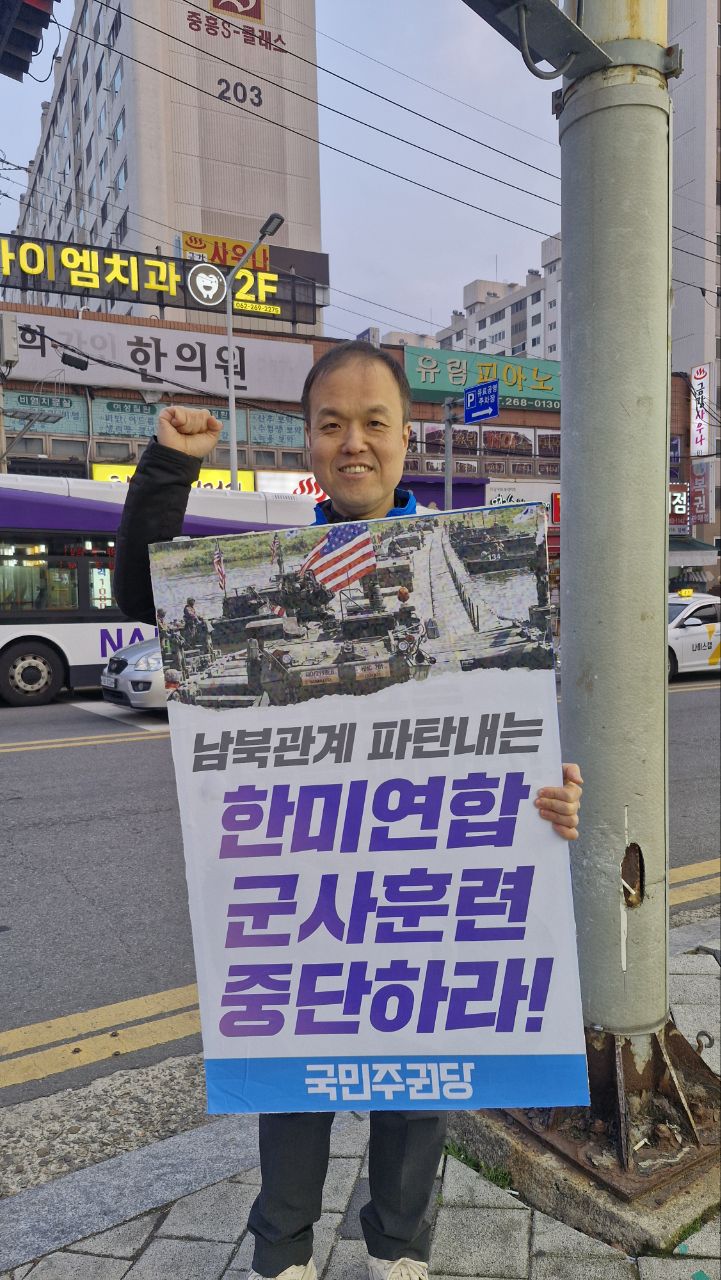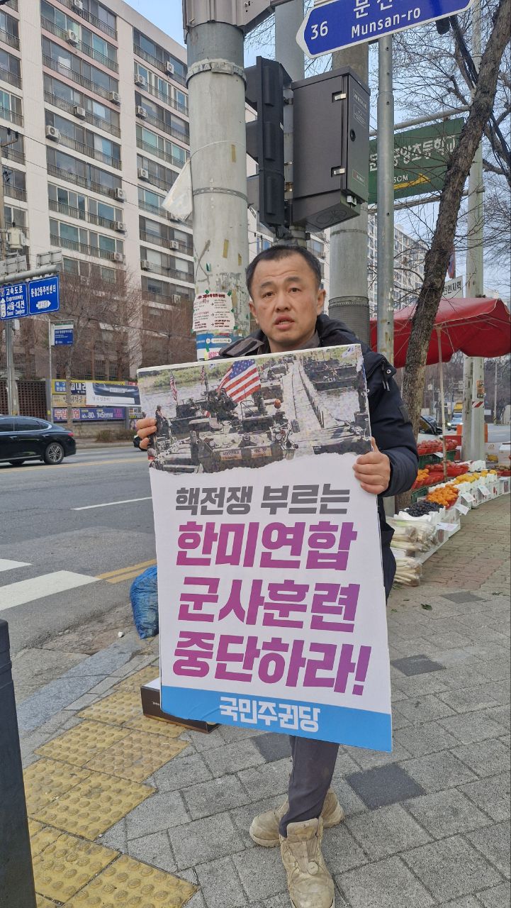 3월 12일 한미연합훈련 중단 촉구 피켓팅을 진행했습니다. 이용주 당원께서 함께해 주셨습니다.