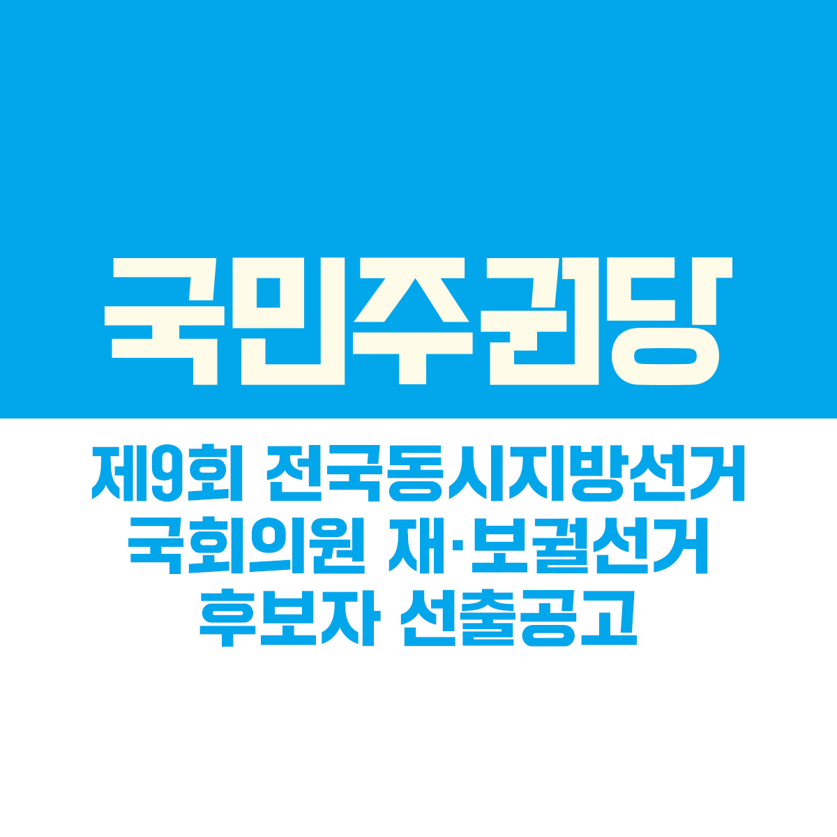 글 제목 : 제9회 전국동시지방선거, 국회의원 재·보궐 선거 후보자 2차 선출 공고