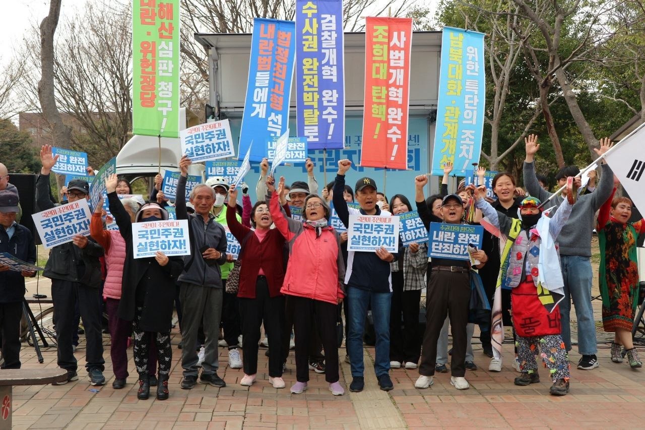 세 번째로 발언한 용봉동 주민 김태현 청년은 '내란당에게 단 한표도 주지 말고 내란당 해산으로 몰아치자', '광주를 내란 청정지역으로 만들자'고 해, 참가자들의 '맞다', '잘한다'와 같은 며 열띤 호응을 끌어냈습니다.