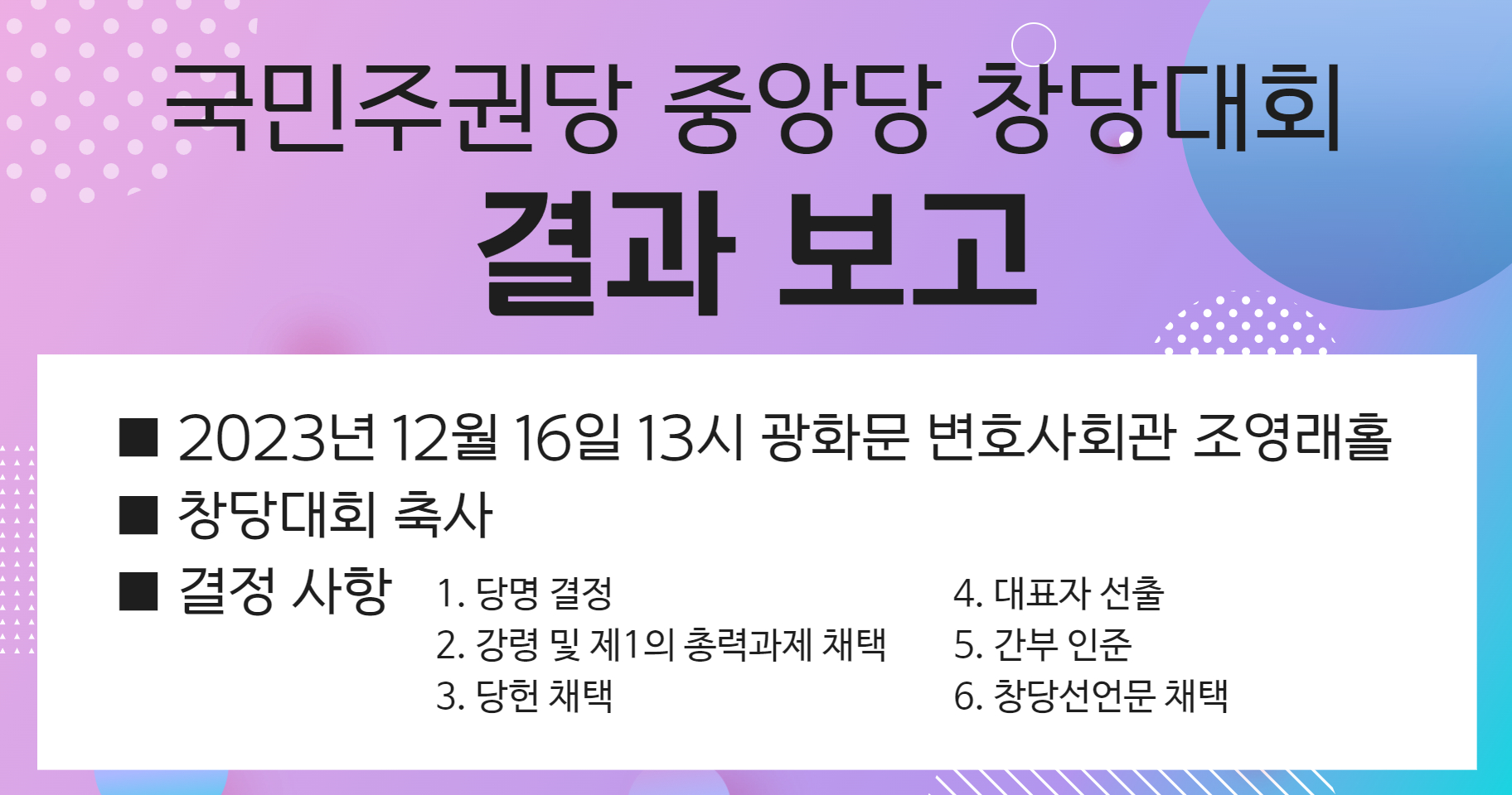 글 제목 : [보고] 국민주권당 중앙당 창당대회 결과 보고