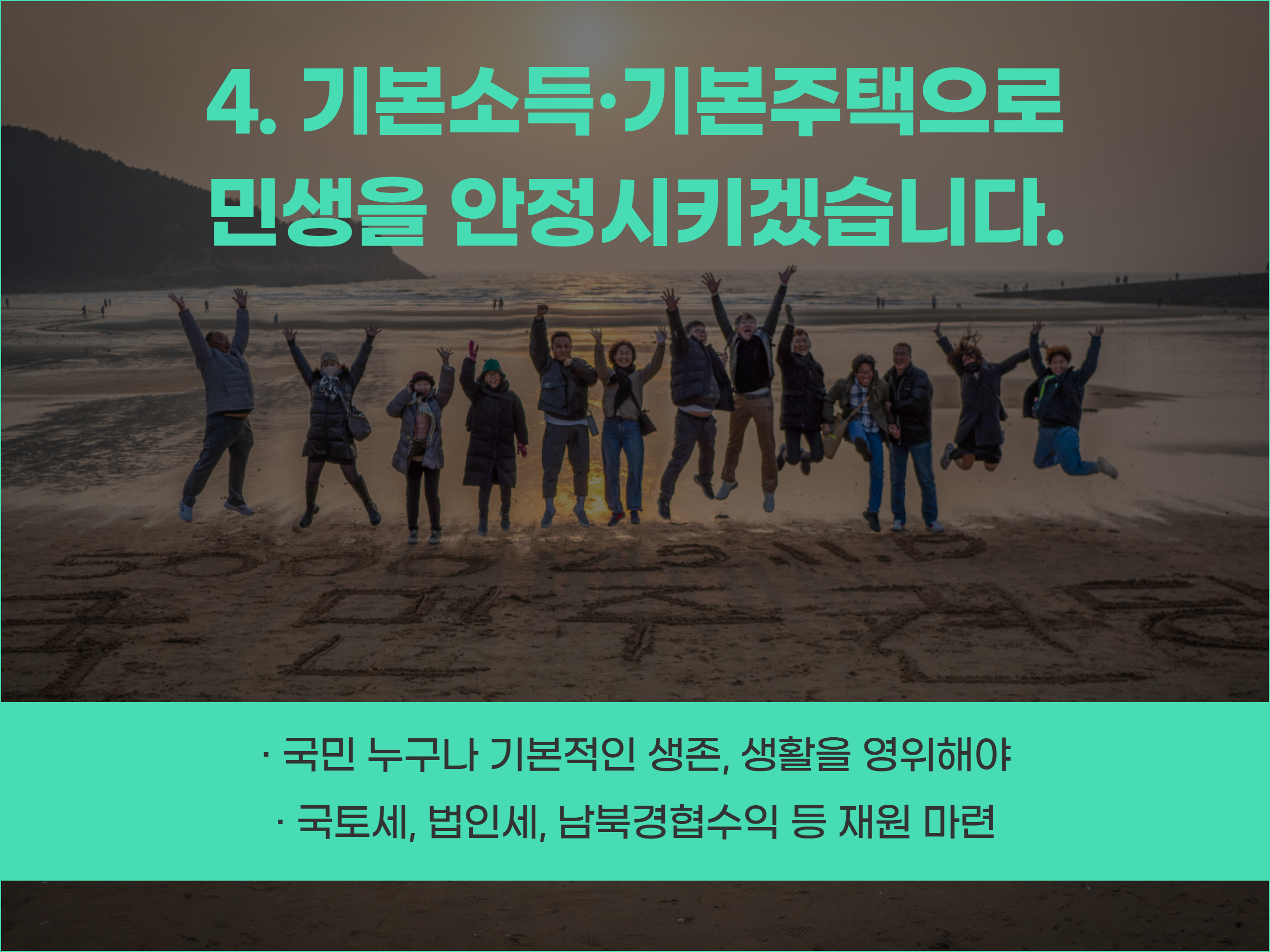 4. 기본소득·기본주택으로 민생을 안정시키겠습니다.