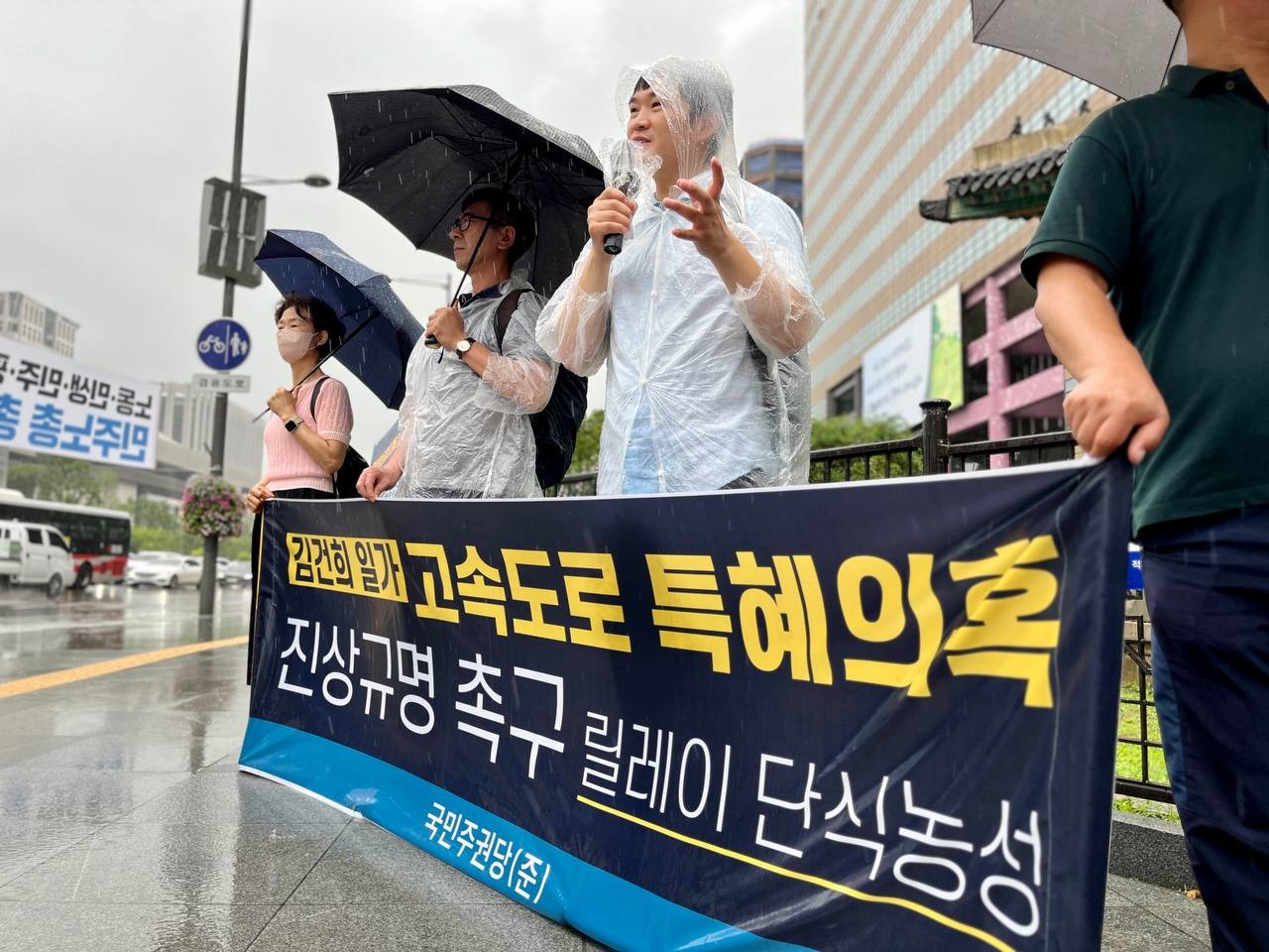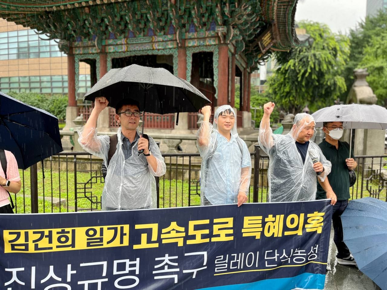 국민주권당(준)은 13일 11시 서울 광화문 사거리 고종비 앞에서 기자회견을 열고 <김건희 일가 고속도로 특혜 의혹 진상 규명 촉구 릴레이 단식 농성>에 돌입했습니다.
