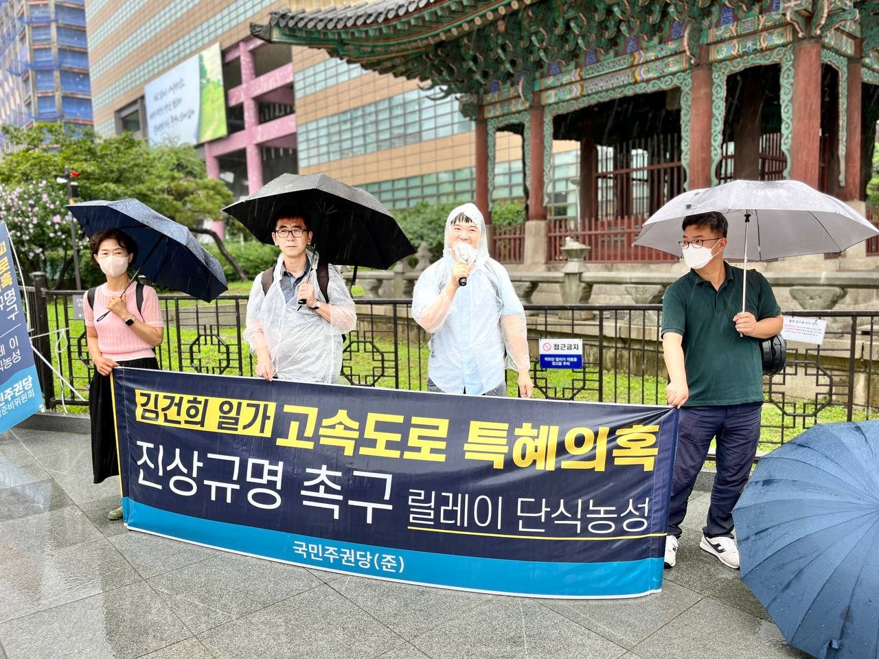 국민주권당(준)은 13일 11시 서울 광화문 사거리 고종비 앞에서 기자회견을 열고 <김건희 일가 고속도로 특혜 의혹 진상 규명 촉구 릴레이 단식 농성>에 돌입했습니다.