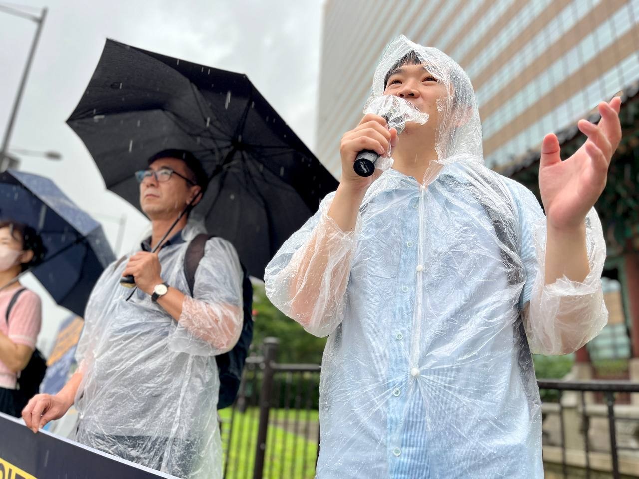 지나다니는 시민 분들이 쏟아지는 폭우 속에서도 기자회견을 하는 저희에게 관심을 보이며 사진도 찍어가셨습니다.