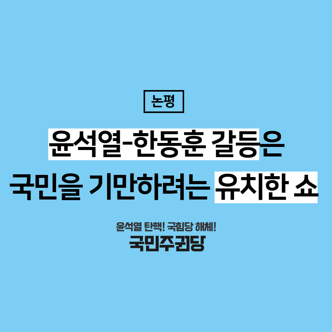 윤석열-한동훈 갈등은 김건희 방탄정권의 실체를 드러내는 것이며 또한 국민을 기만하는 유치한 쇼다.