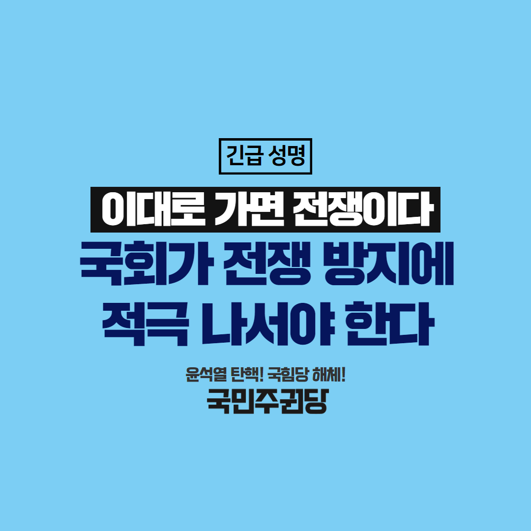 일촉즉발의 위기 상황이다. 윤석열 정권이 전쟁을 향해 폭주하고 있는 것을 손 놓고 지켜보고만 있을 수 없다. 정치권과 국회, 그리고 국민들이 모두 나서서 윤석열 정권을 멈추고 전쟁을 막자!