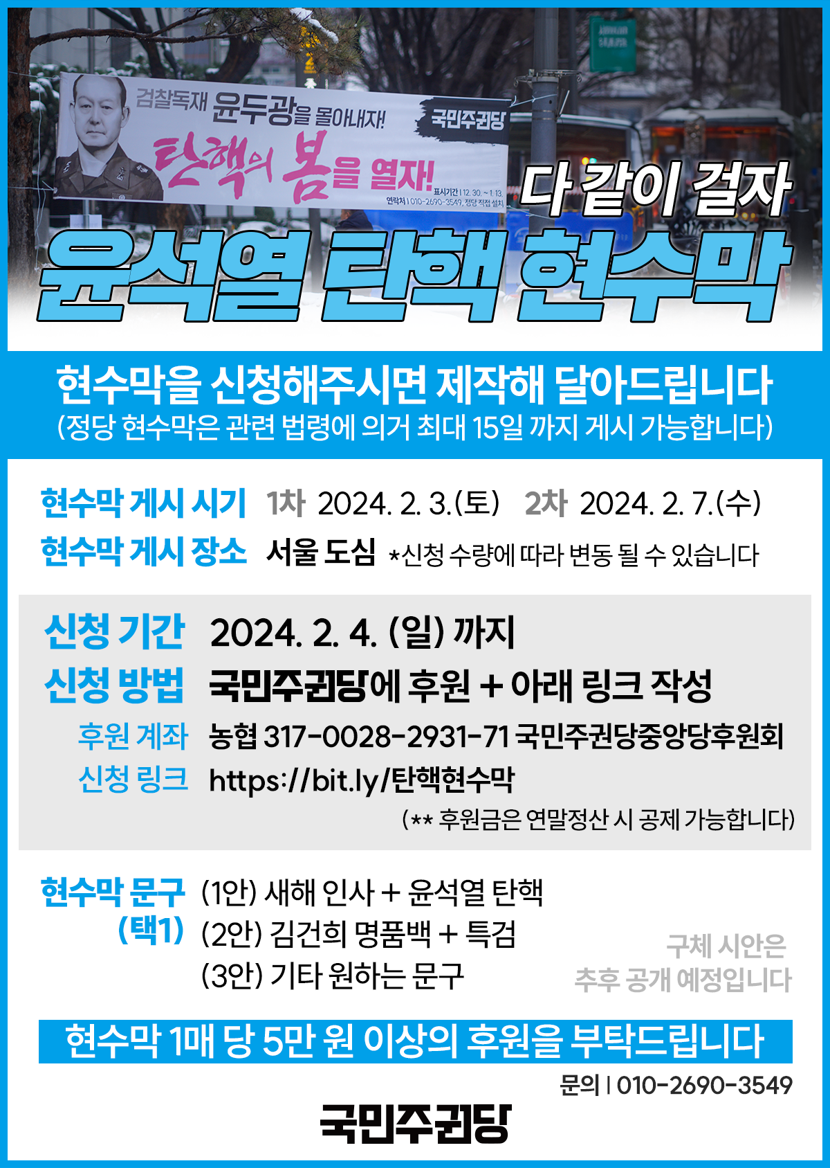 글 제목 : 윤석열 탄핵 현수막 신청받습니다