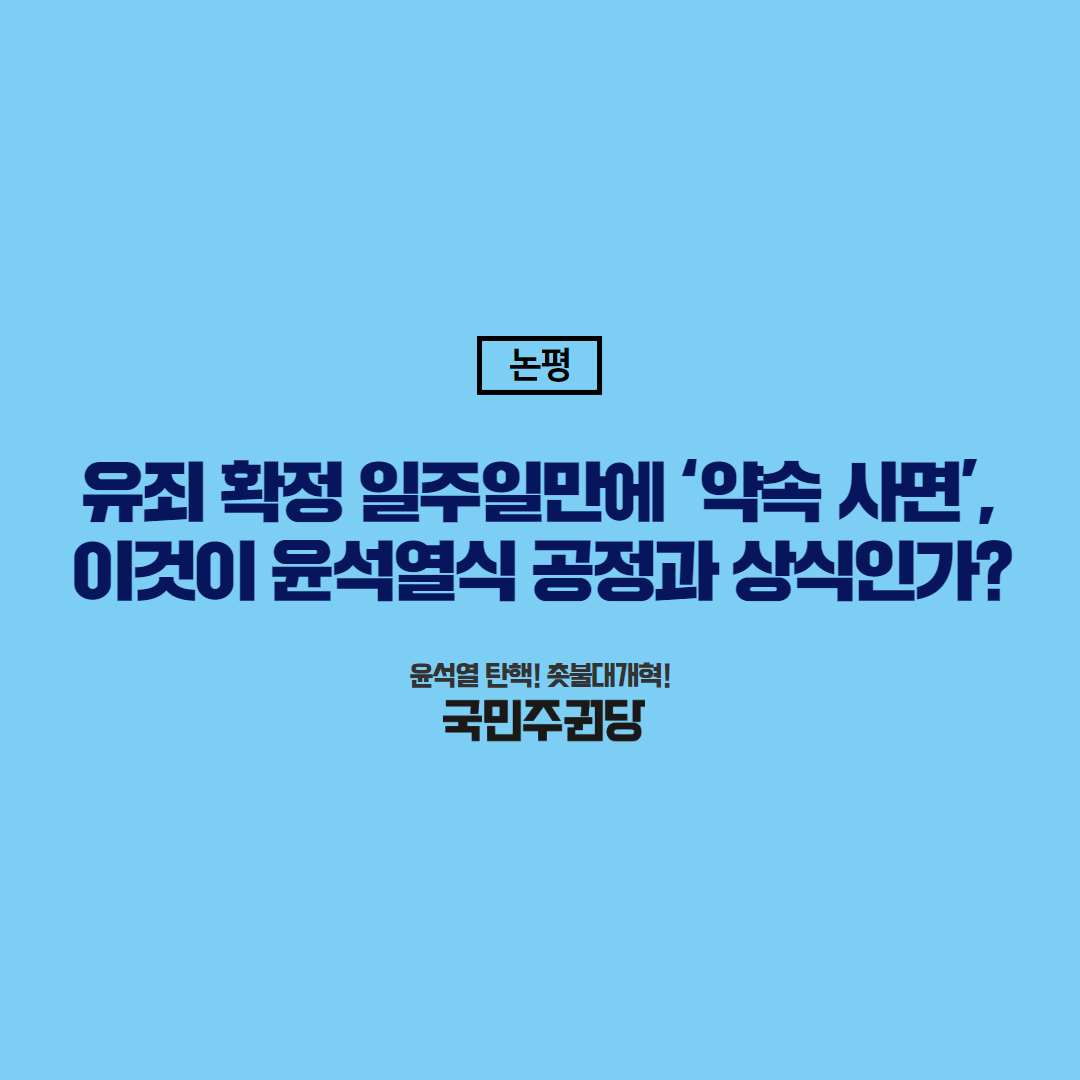 글 제목 : [논평] 유죄 확정 일주일만에 ‘약속 사면’, 이것이 윤석열식 공정과 상식인가?