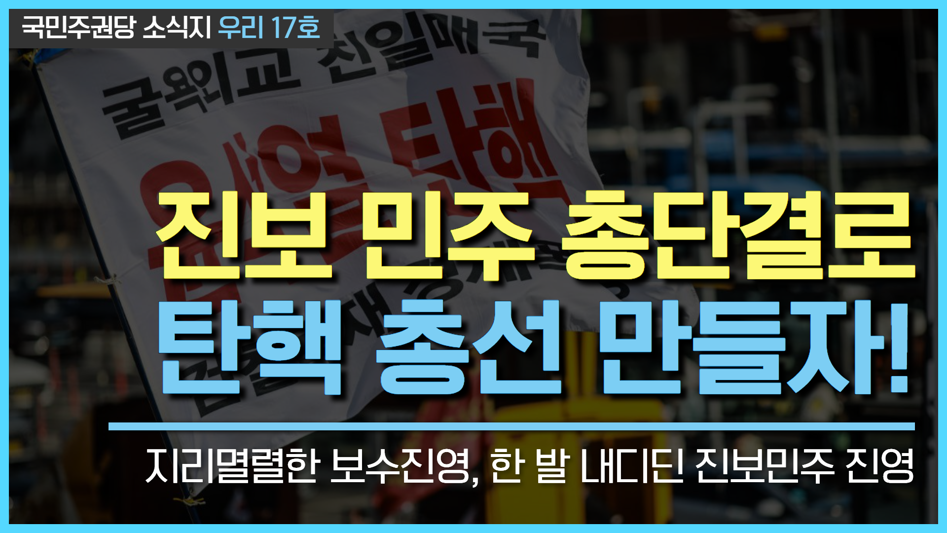 글 제목 : 국민주권당 소식지 <우리> 17호 "진보 민주 총단결로 탄핵 총선을 만들자!"