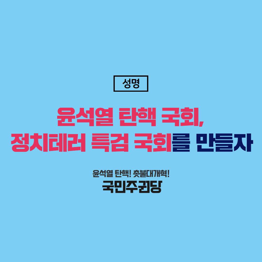 모든 민주세력이 힘을 합쳐 윤석열 탄핵 국회, 정치테러 특검 국회를 만들자!
