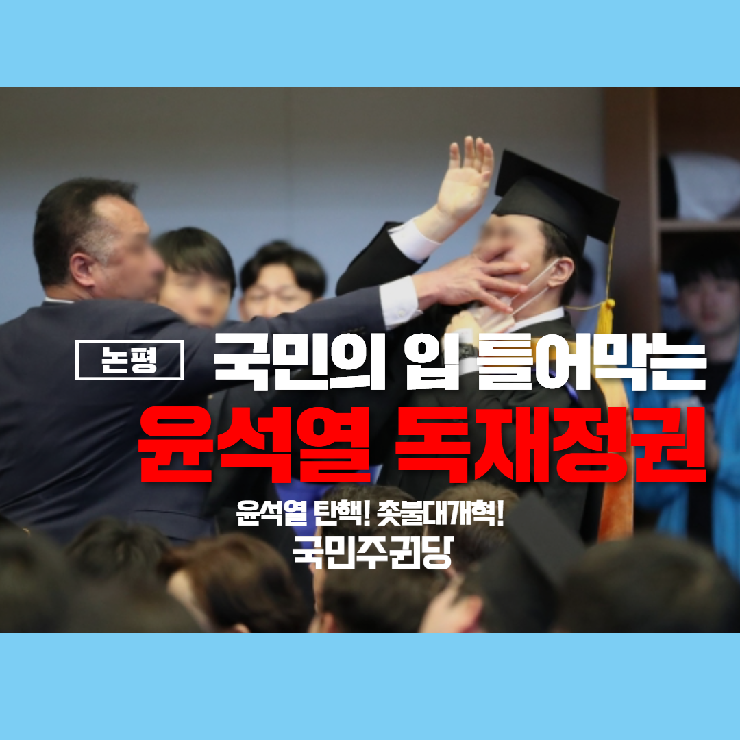 오늘 윤석열 대통령이 카이스트 졸업식에서 항의하는 졸업생을 또다시 입을 틀어막고 끌어내는 만행을 저질렀다.