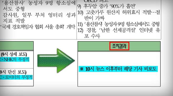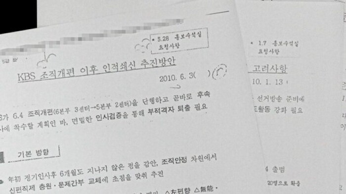 이명박 정권은 문건에 제시된 방안대로 KBS·MBC 등을 장악해 들어갔다. MBC 100분 토론 진행자 손석희를 비롯해 김제동, 김미화 씨 등이 방송 프로그램에서 하차하고 KBS ‘추적 60분’ 책임PD가 보직 변경되는 일들이 일어났다.