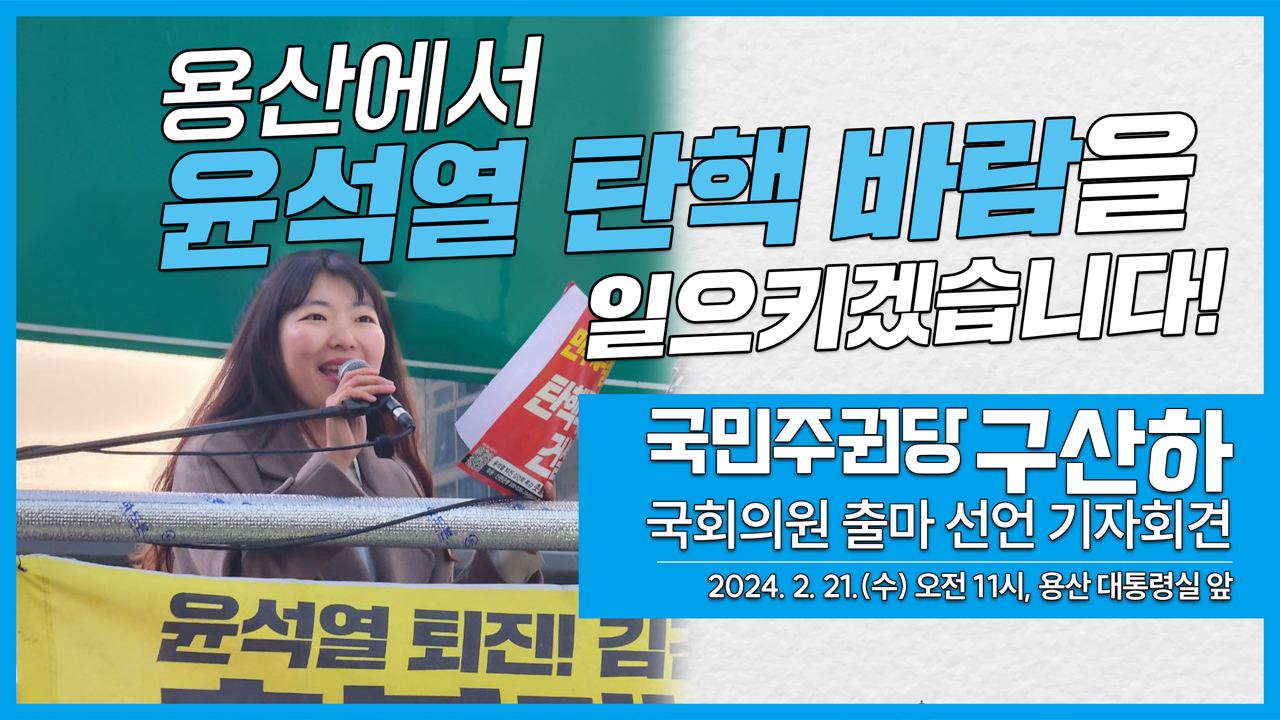 🔸취지 : 오직 국민을 믿고 윤석열 탄핵을 위해 싸우겠습니다. 우리 국민이 맞고 있는 초유의 민생 위기, 전쟁 위기, 민주주의 위기를 돌파할 방법은 윤석열 탄핵밖에 없습니다. 대통령실과 관저가 있는 용산에서 탄핵 바람을 일으켜 나가겠습니다. 관심 갖고 지켜봐 주시고 응원해 주시고, 함께해 주시기 바랍니다!